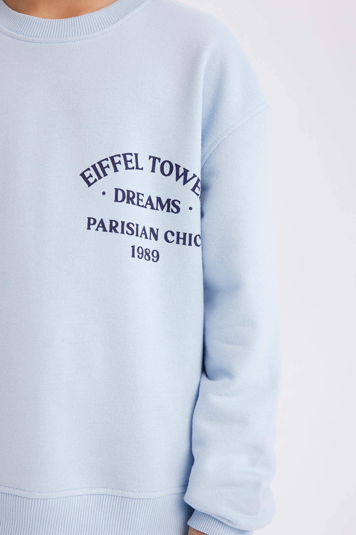 Свитшот детский Relax Fit с велосипедным воротником и принтом DeFacto, Цвет: Синий, Размер: 5-6 лет