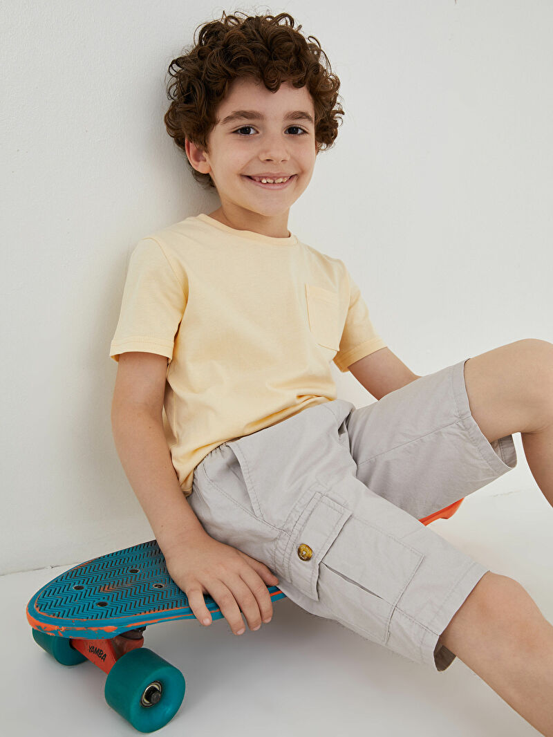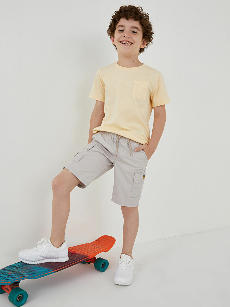 Бренд - LC Waikiki; Длина рукава - Короткий рукав; Материал (состав) - Хлопок; Страна производства - Турция; Тип воротника - Обычный; Ткань - Пенье; Узор - Однотонный; Цвет - Бежевый