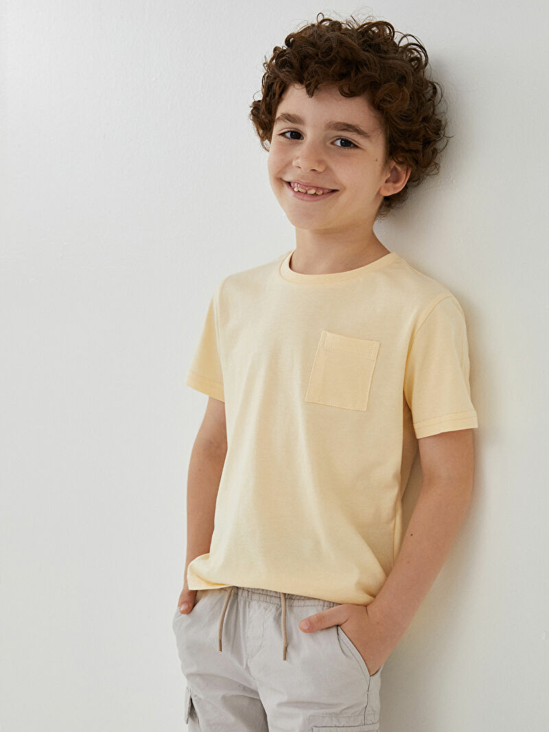 Бежевая однотонная хлопковая футболка с коротким рукавом для мальчиков 6-7 лет, LC Waikiki, пенье, обычный воротник, повседневная, Турция