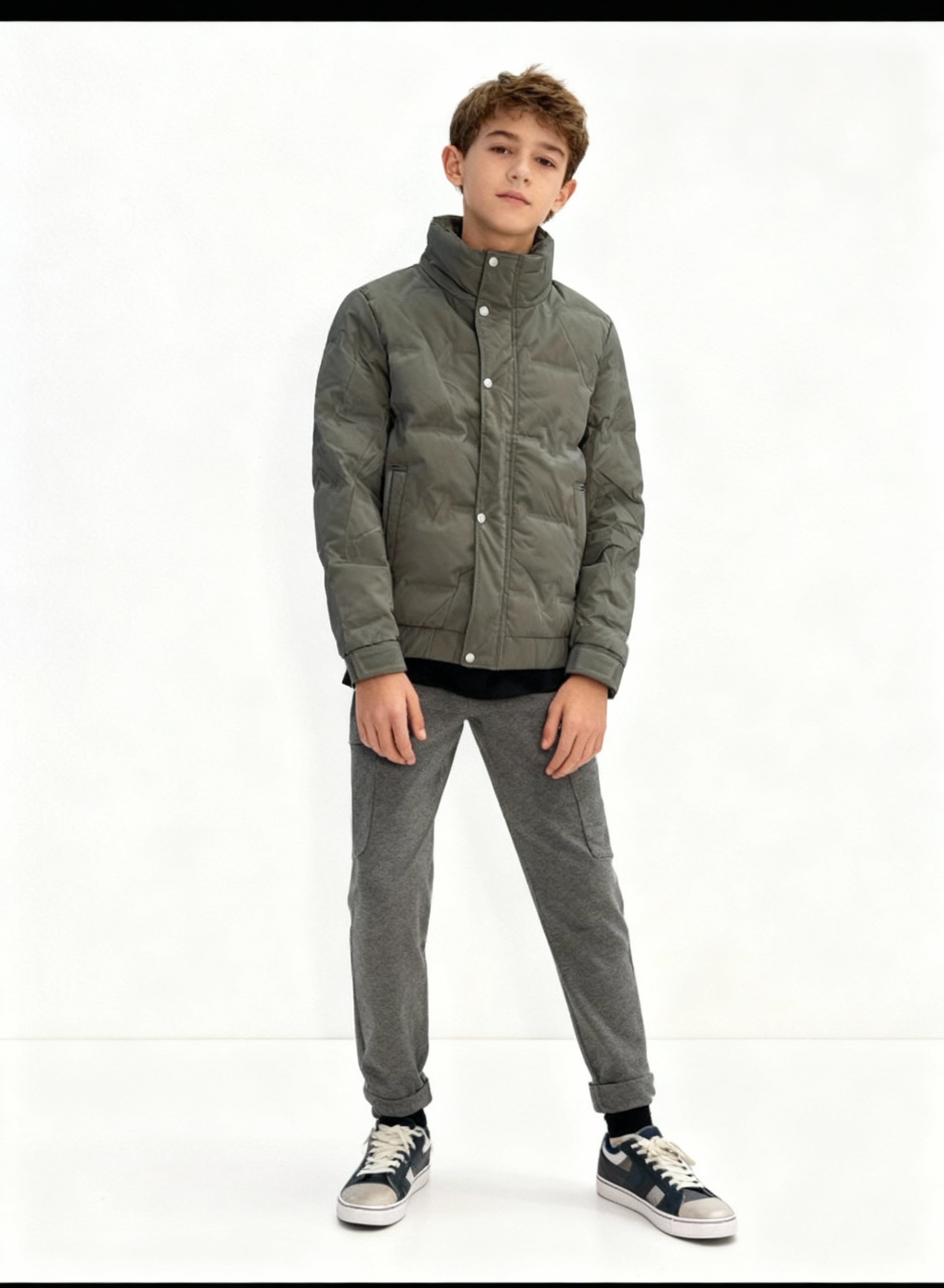 Стильная куртка для подростков: стёганая, на кнопках, модный воротник