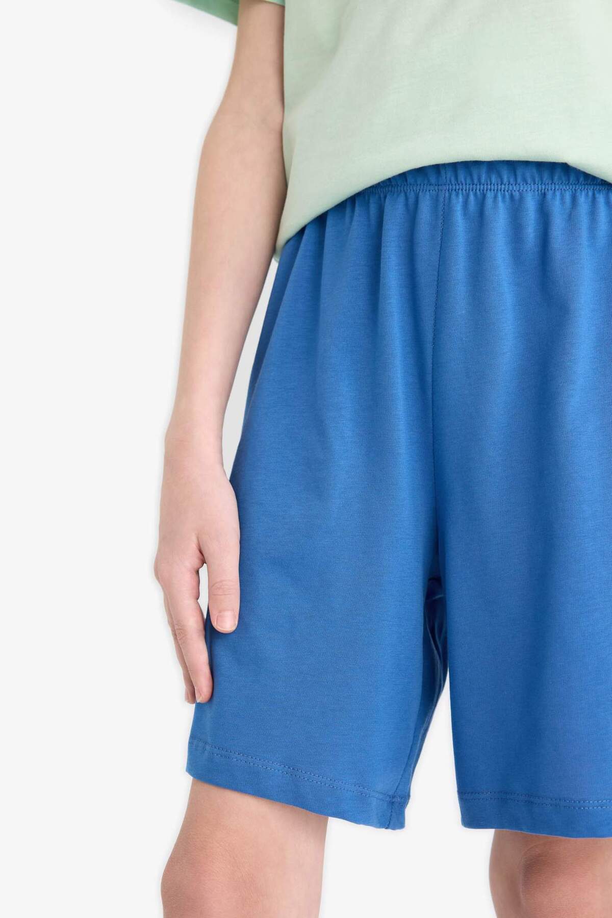 Детский пижамный комплект для мальчиков, состоящий из футболки с коротким рукавом и шорт на резинке. Выполнен из 100% хлопка, украшен принтом. Повседневный комфортный вариант для сна и отдыха.