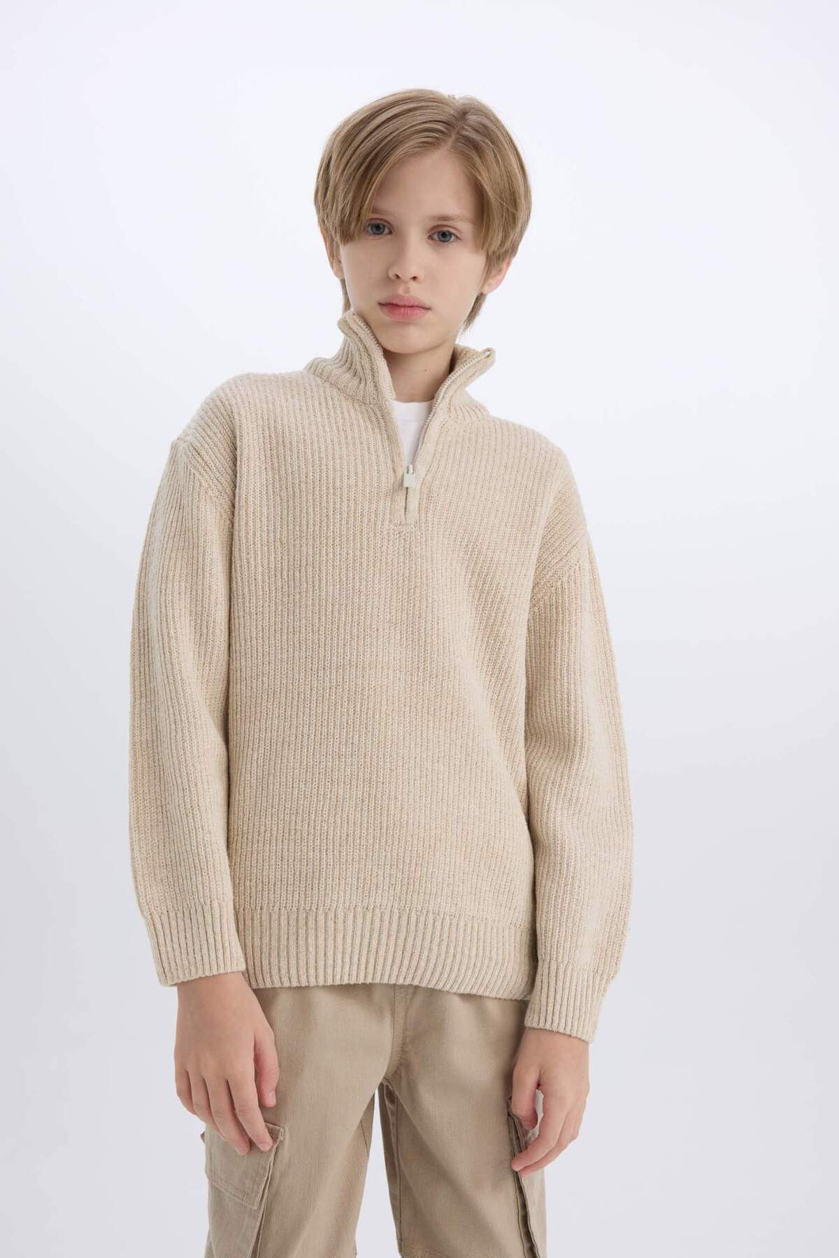 Свитер детский с молнией и стойкой DeFacto, Цвет: Экрю, Размер: 8-9 лет