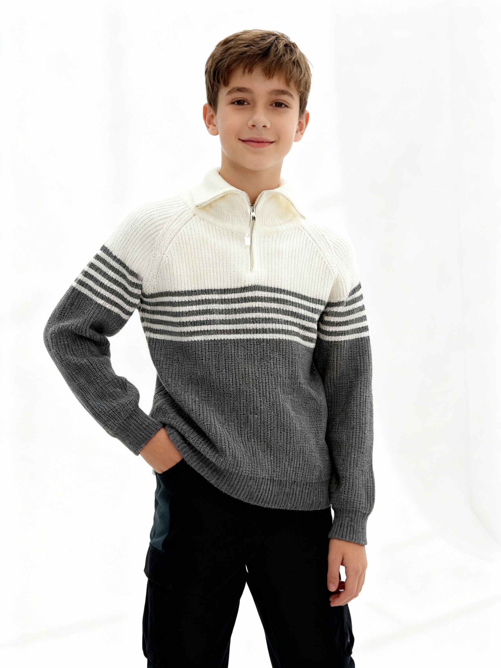 Серо-белый детский свитер с воротником на молнии, мягкая вязка