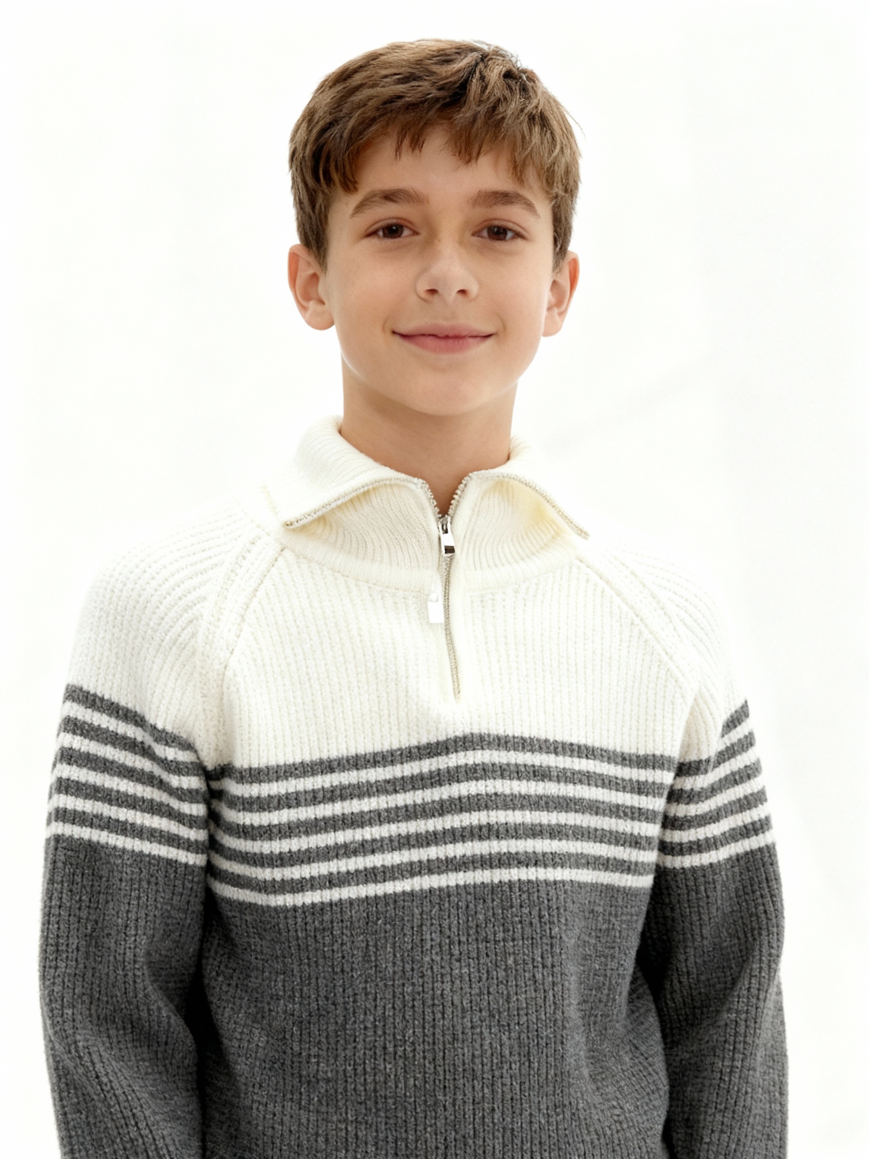Серо-белый детский свитер с воротником на молнии, мягкая вязка
