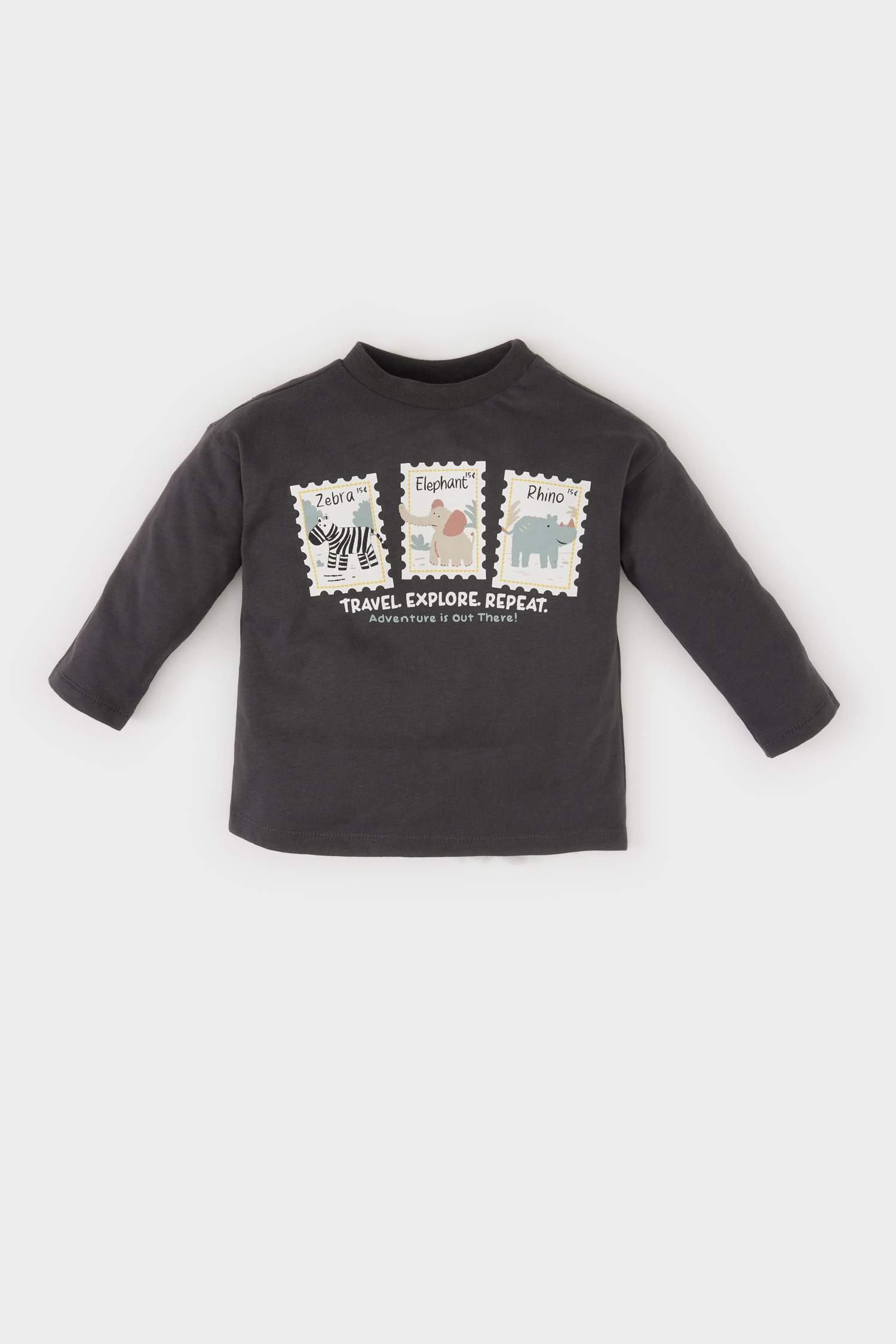 Футболка для мальчика с длинным рукавом и принтом животных с велосипедным воротником DeFacto, Цвет: Антрацит, Размер: 12-18 мес.