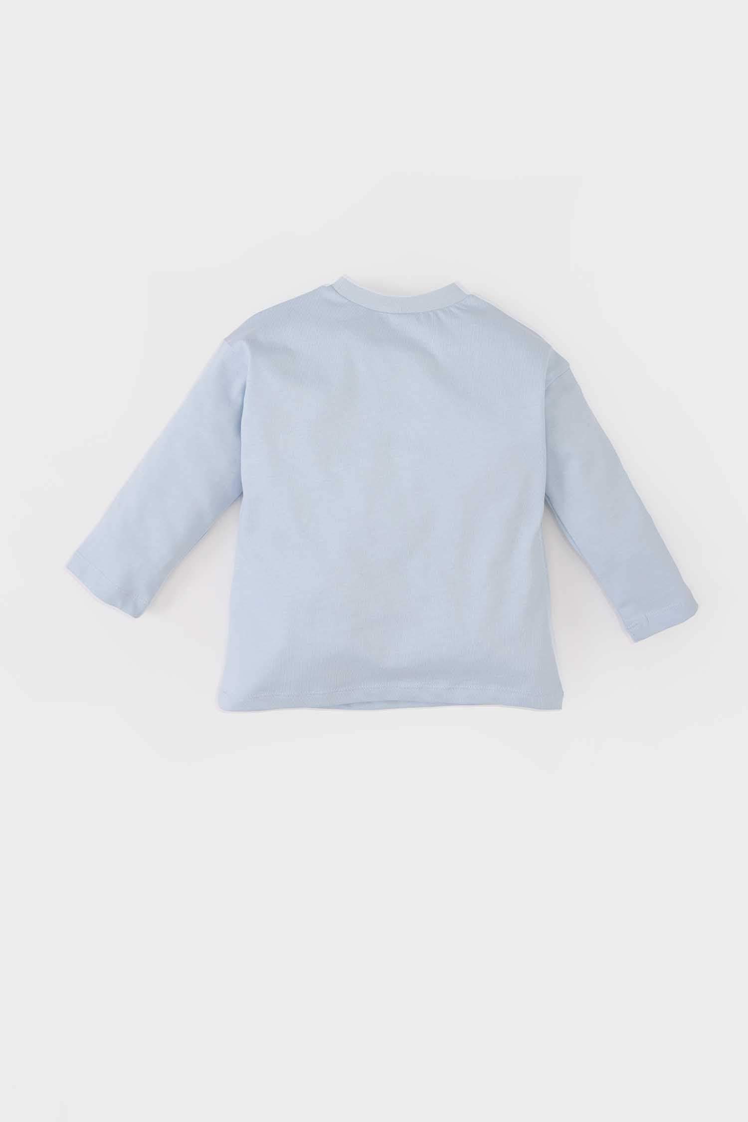 Футболка для мальчика с велосипедным воротником и принтом, длинный рукав DeFacto, Цвет: Синий, Размер: 9-12 мес.