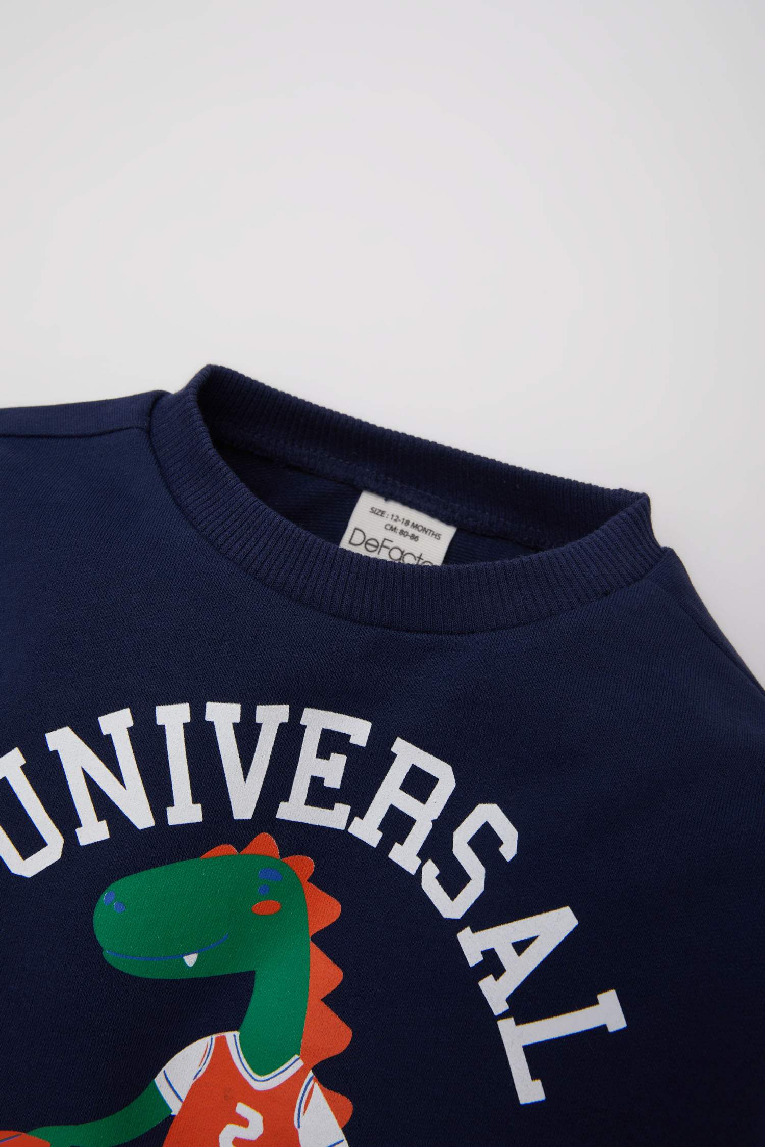 Свитшот для мальчика с принтом динозавра и велосипедным воротником DeFacto, Цвет: Темно-синий, Размер: 3-4 года