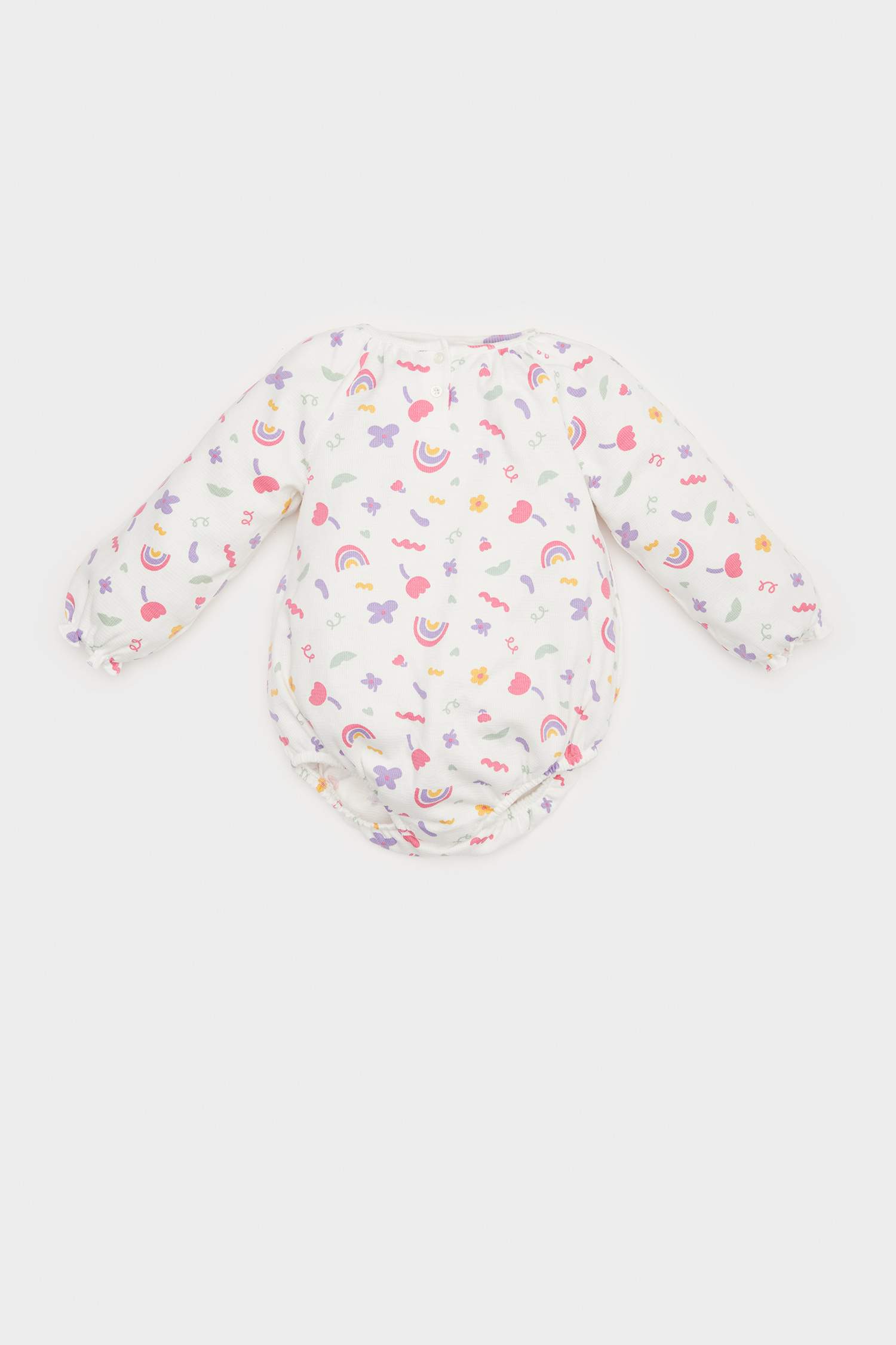 Боди для новорожденных девочек с велосипедным воротником и радужным принтом DeFacto, Цвет: Экрю, Размер: 6-9 мес.