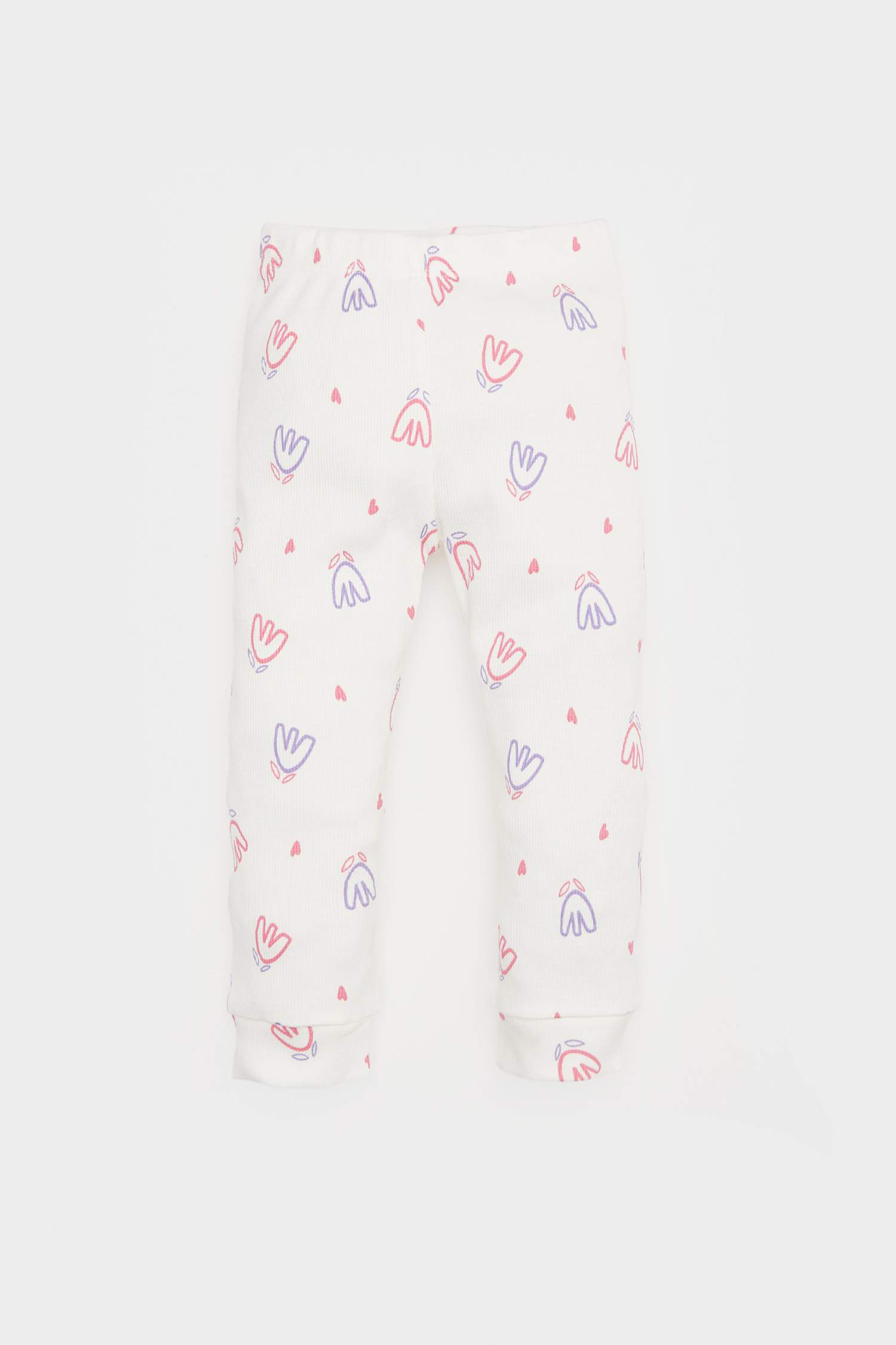 Комплект для девочки 2 предмета цветочный фитильный кашкорсе длинный рукав боди с кнопками длинные штаны DeFacto