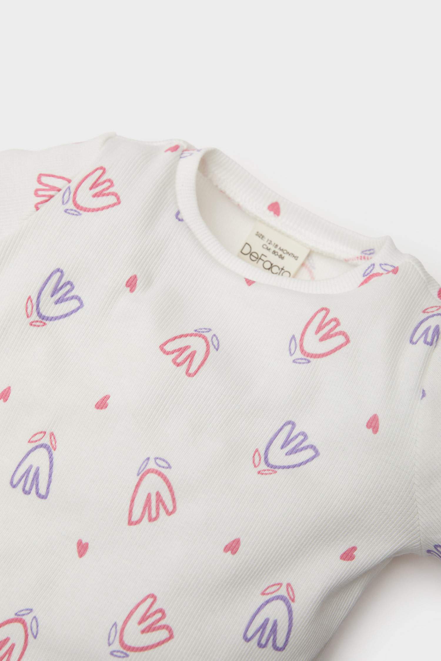 Комплект для девочки 2 предмета цветочный фитильный кашкорсе длинный рукав боди с кнопками длинные штаны DeFacto