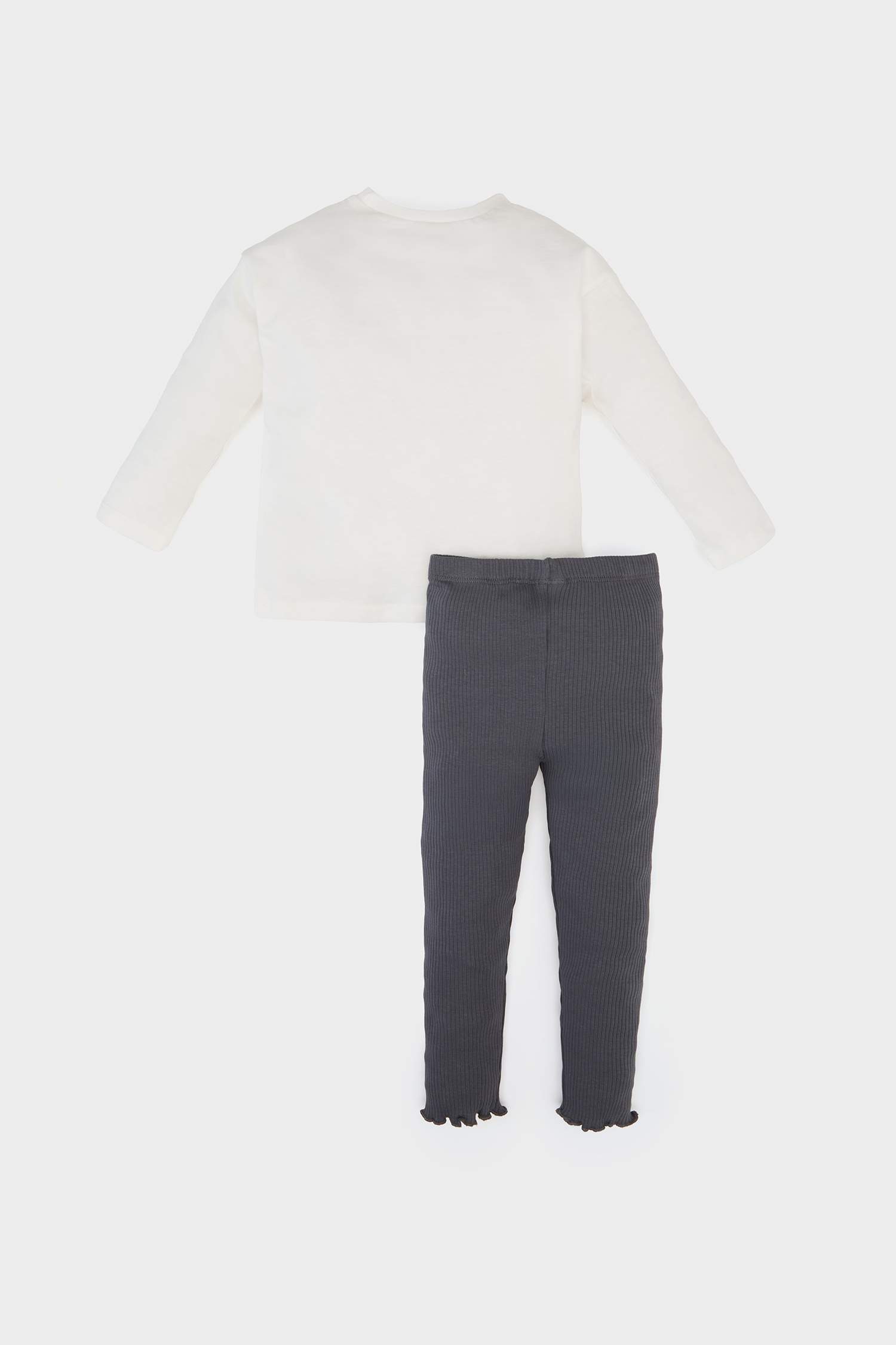 Комплект для девочки 2 предмета: футболка с длинными рукавами с принтом балерины и лосины с резинкой на талии DeFacto, Цвет: Экрю, Размер: 24-36 мес.