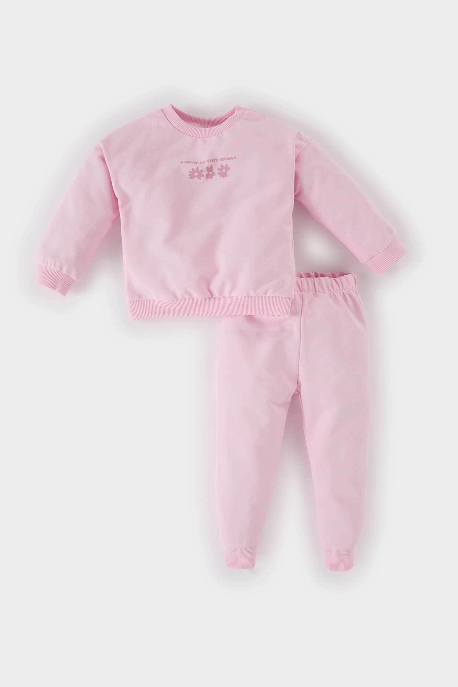 Комплект для девочки 2 предмета: свитшот с цветочным принтом и спортивные брюки на резинке DeFacto, Цвет: Розовый, Размер: 18-24 мес.