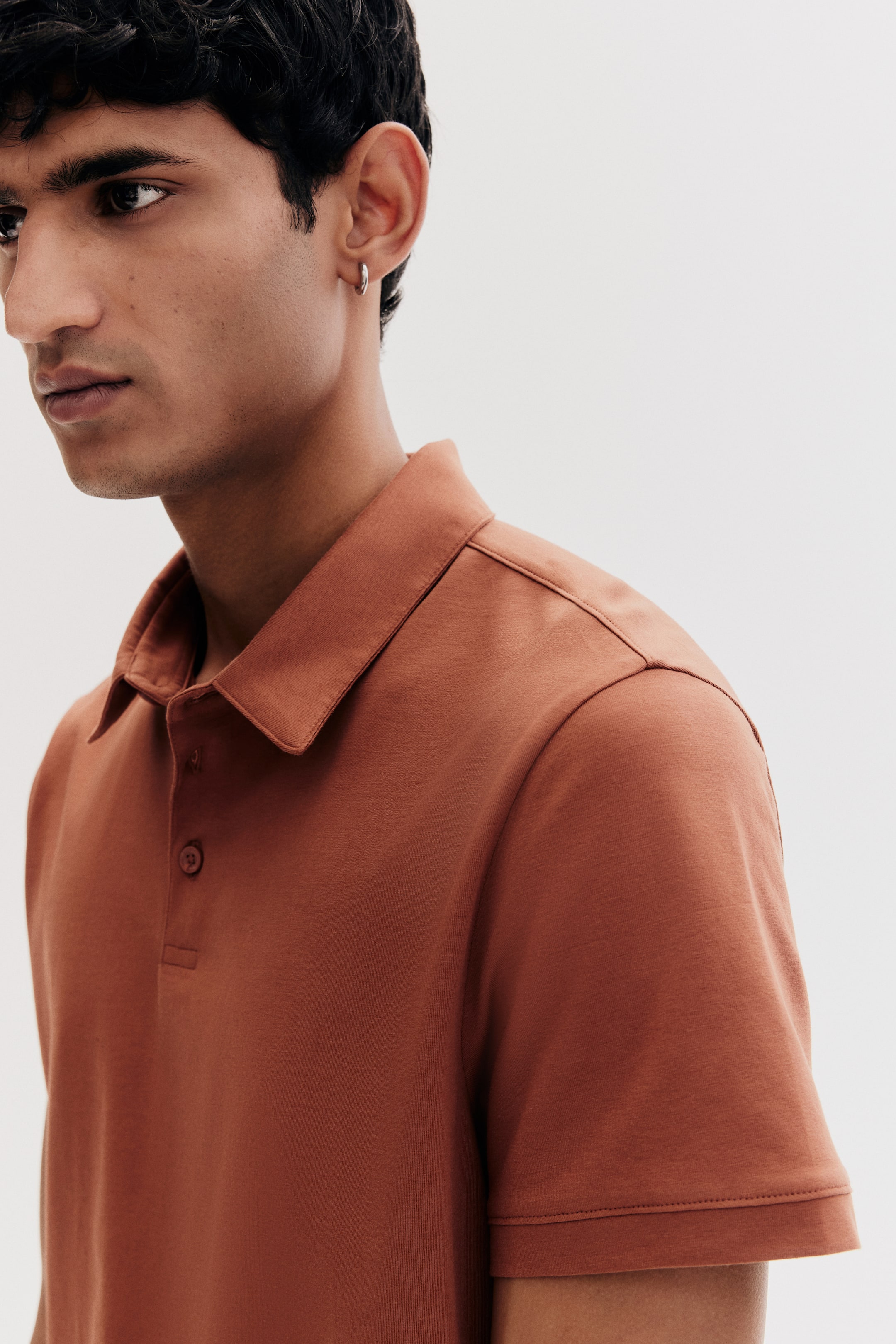 Хлопковая легкая футболка поло с воротником, застежкой на пуговицы, короткими рукавами и прямым подолом. Узкий крой подчеркивает контуры тела и обеспечивает идеальную посадку.