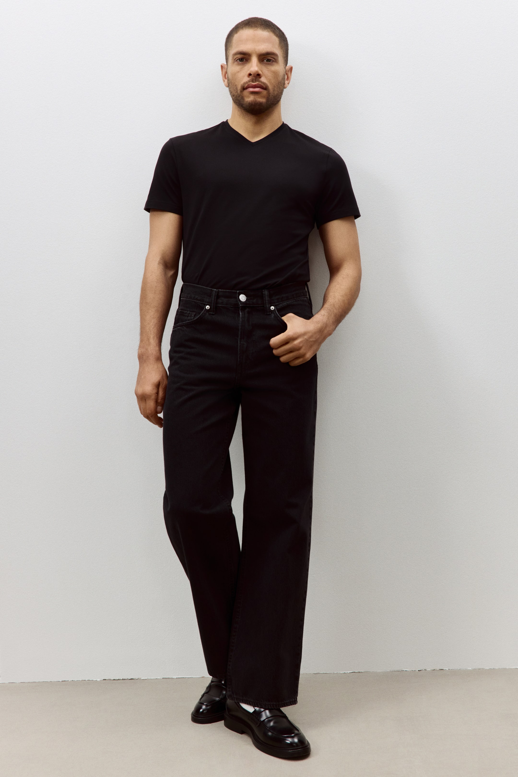 Бренд - H&M; Длина - Стандарт; Длина рукава - Короткий рукав; Модель - Узкий; Тип воротника - V-вырез; Цвет - Черный