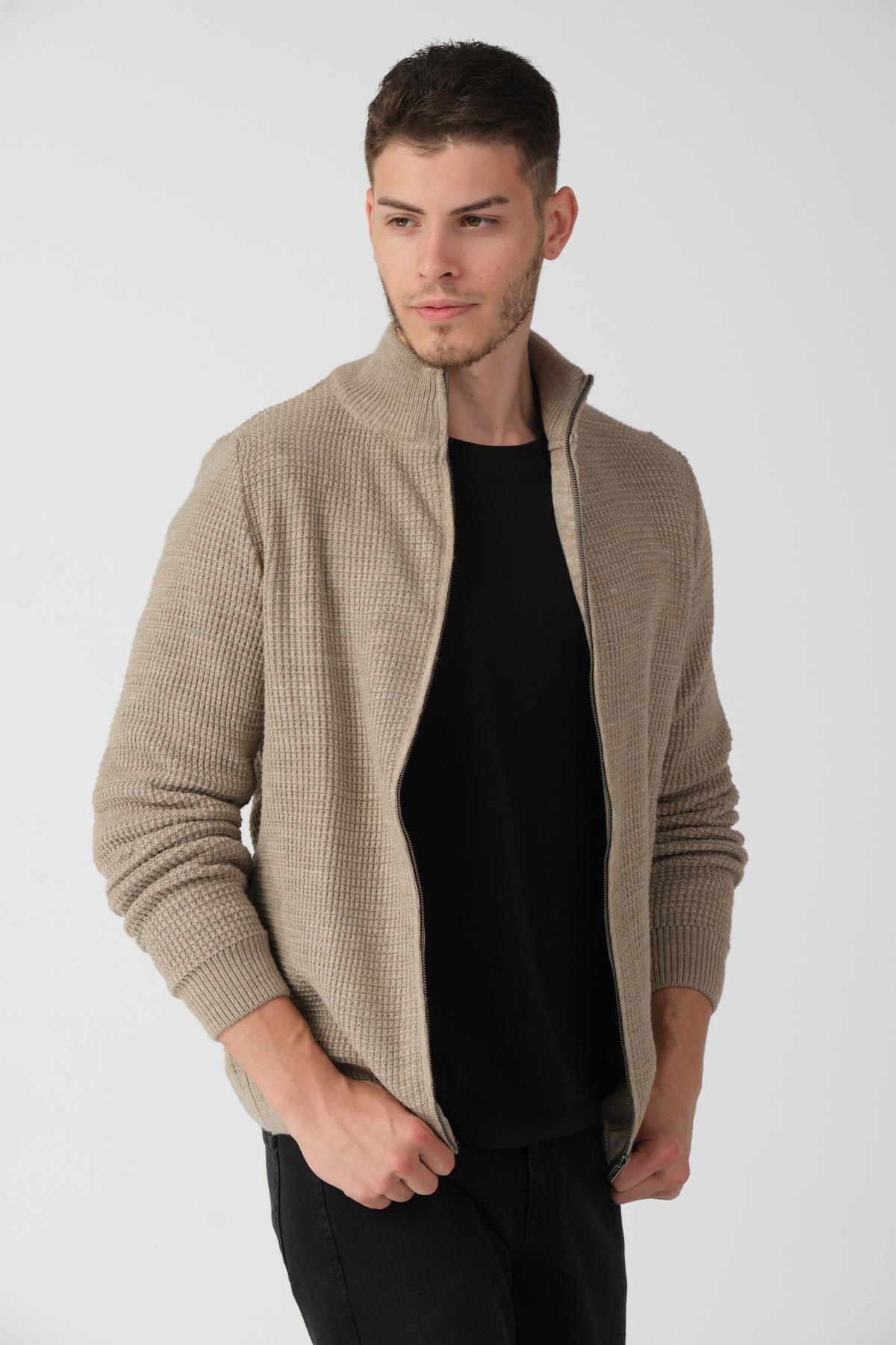 Прямой кардиган из хлопка и акрила с длинными рукавами и застежкой на молнии. Повседневная модель стандартной длины без карманов.