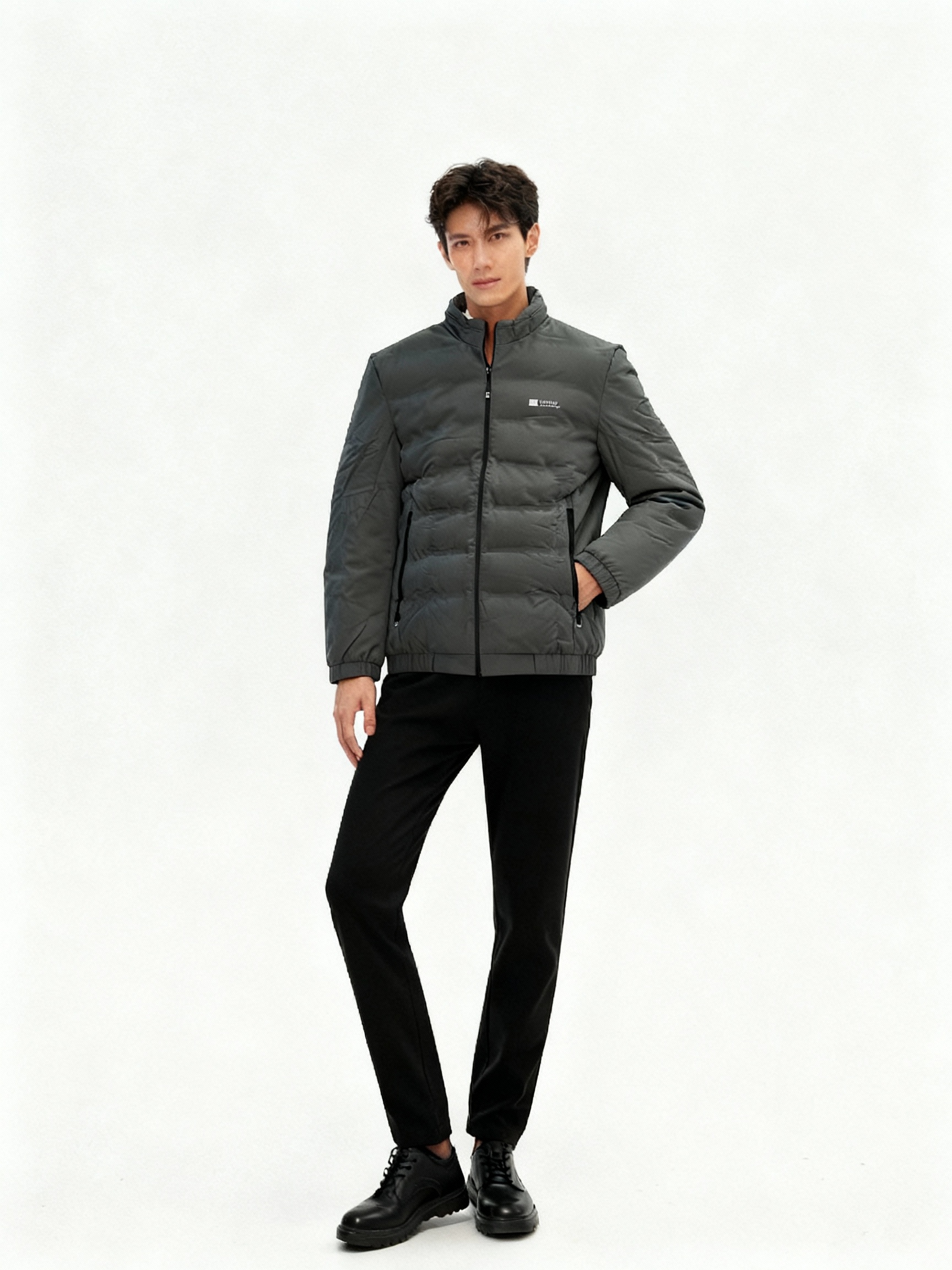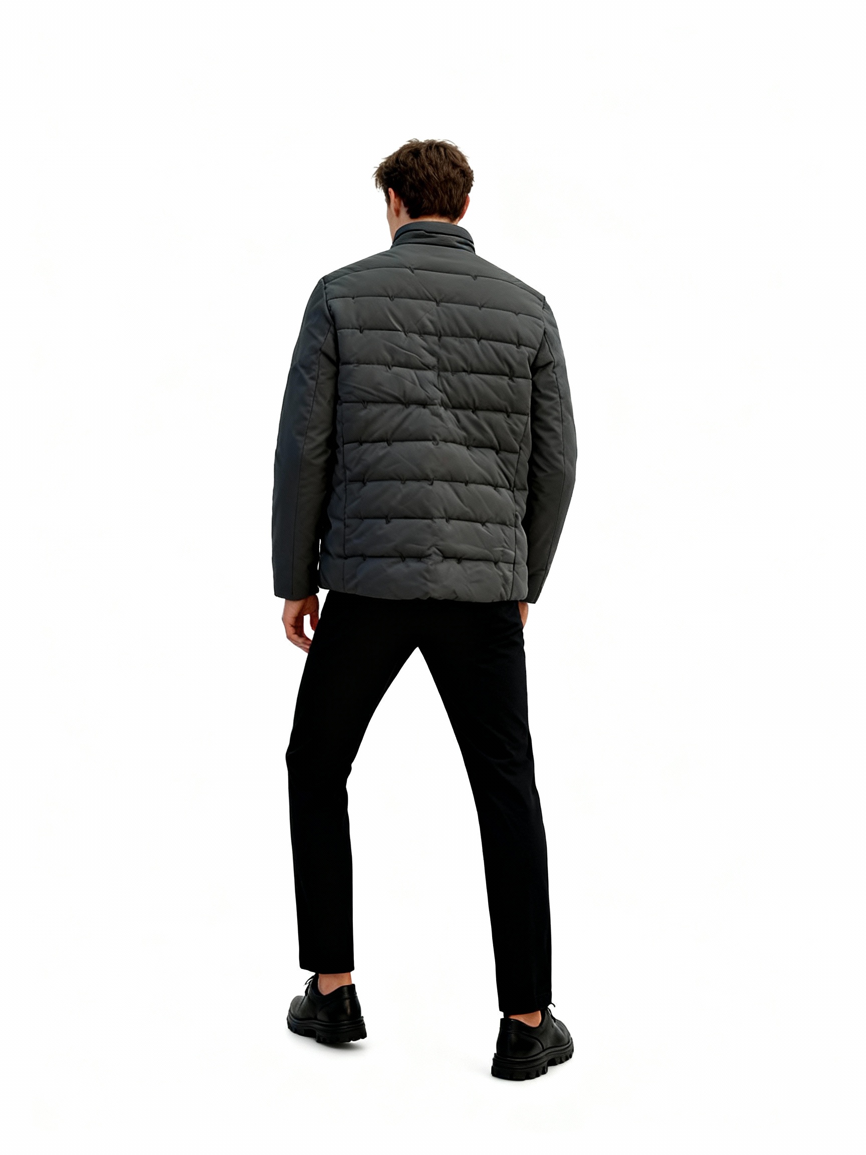 Стильная мужская куртка: стёганая, на молнии, с логотипом.