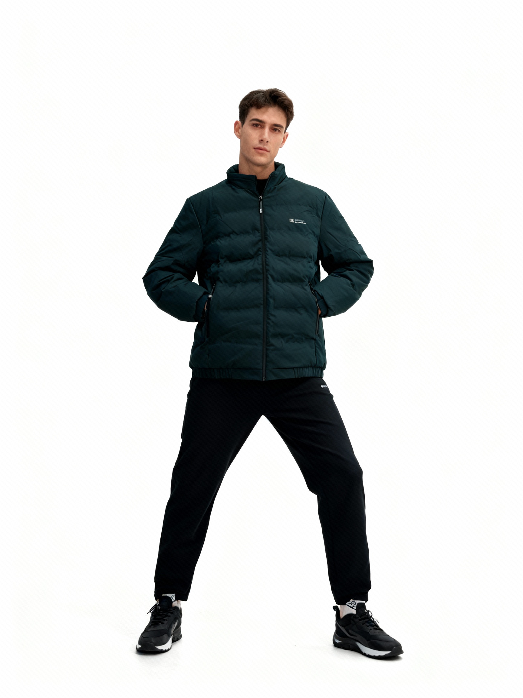 Стильная мужская куртка: стёганая, на молнии, с логотипом.