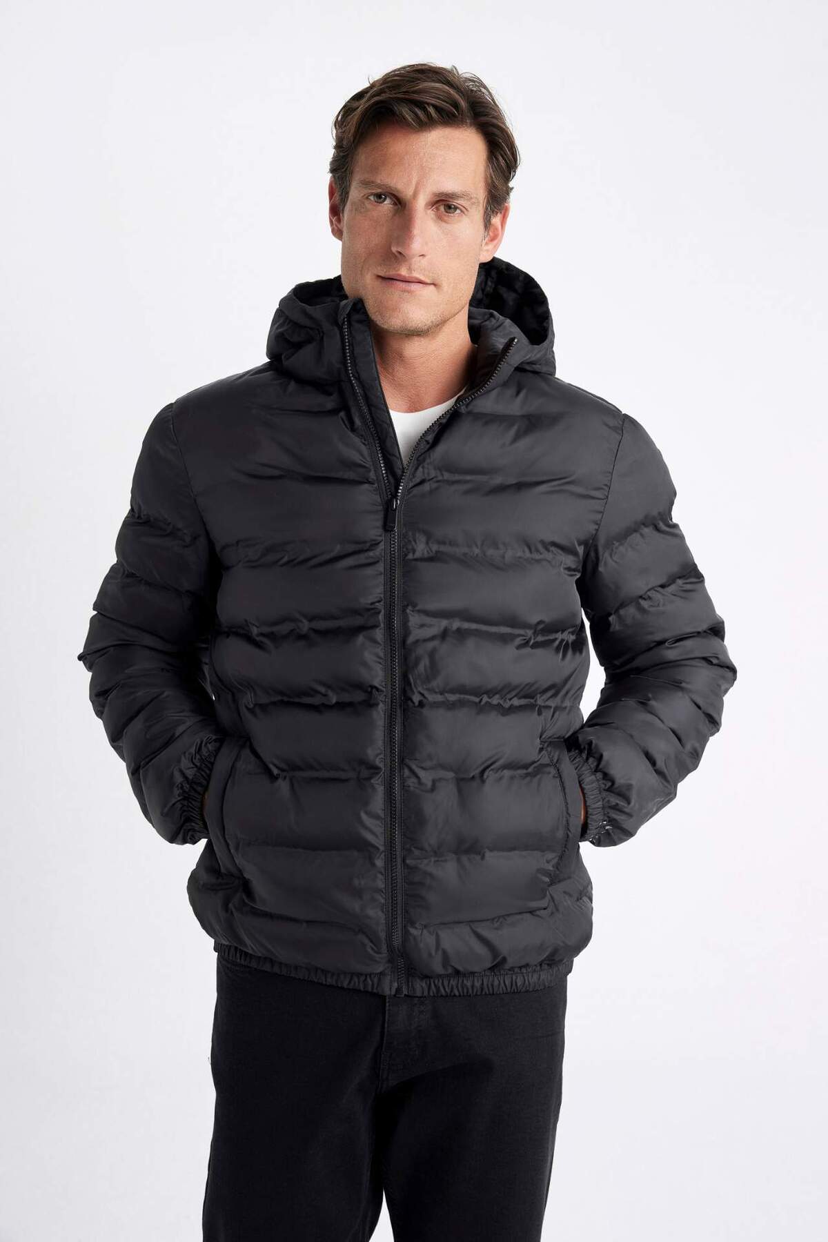 Бренд - DeFacto; Длина - Стандарт; Длина рукава - Длинный рукав; Материал (состав) - Полиэстер; Модель - Стандарт; Подкладка - На подкладке; Страна производства - Турция; Тип воротника - С капюшоном; Толщина - Толстый; Узор - Однотонный; Цвет - Черный