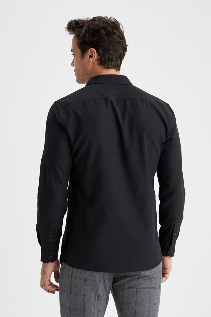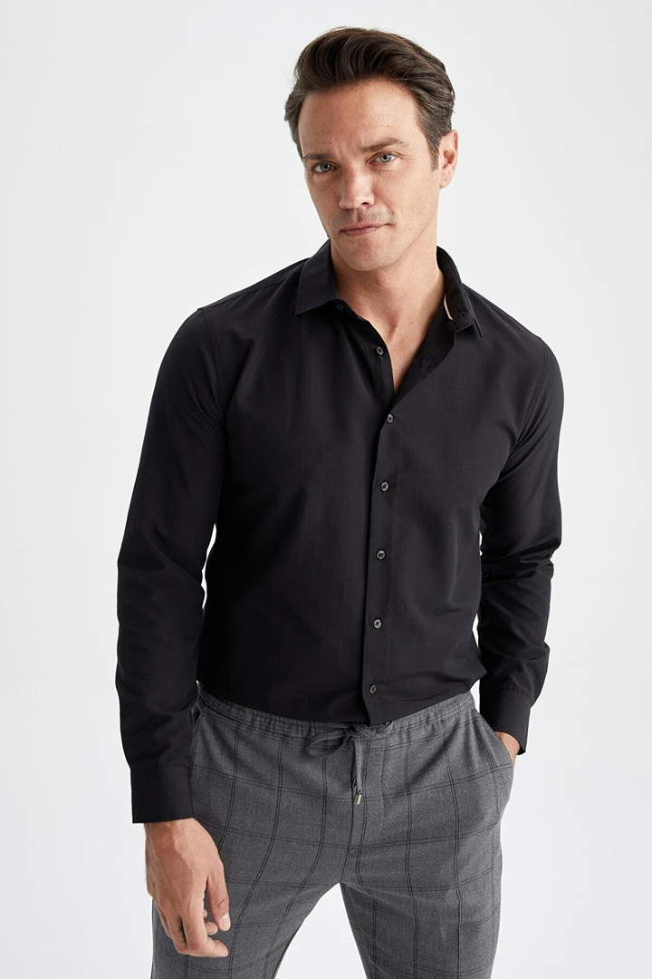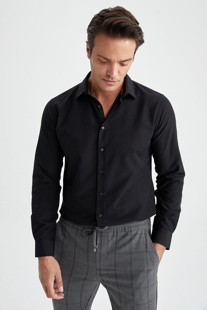 Бренд - DeFacto; Длина рукава - Длинный рукав; Материал (состав) - Хлопок; Страна производства - Турция; Тип воротника - Воротник рубашки; Узор - Однотонный; Цвет - Черный