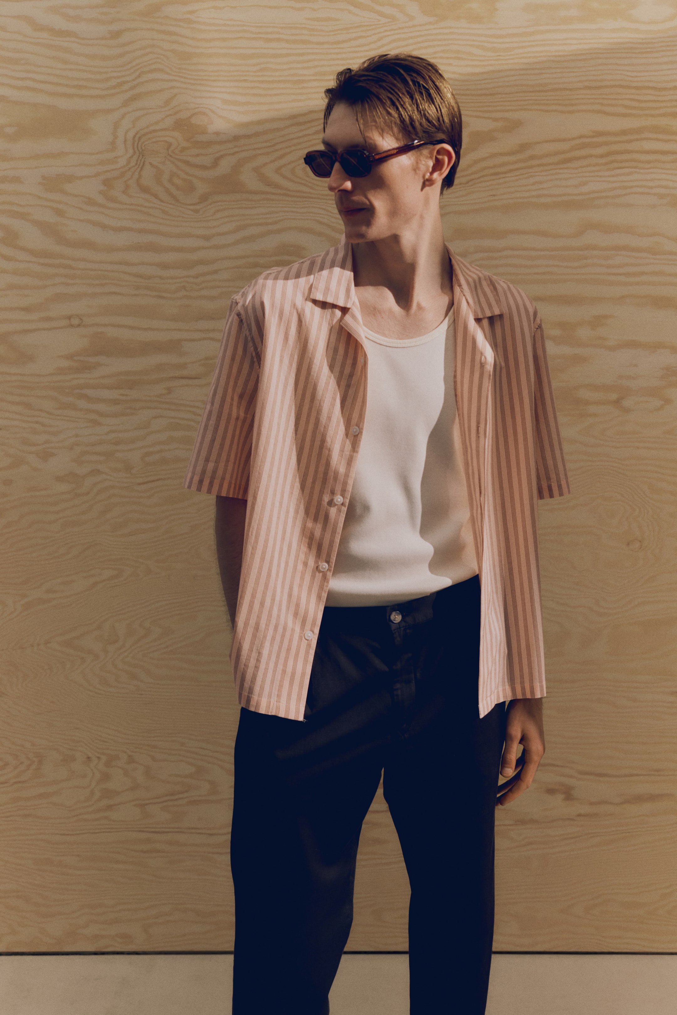 Бренд - H&M; Длина - Стандарт; Длина рукава - Короткий рукав; Материал (состав) - Хлопок; Модель - Стандарт; Тип воротника - Воротник рубашки; Толщина - Тонкий; Узор - Полосатый; Цвет - Красный