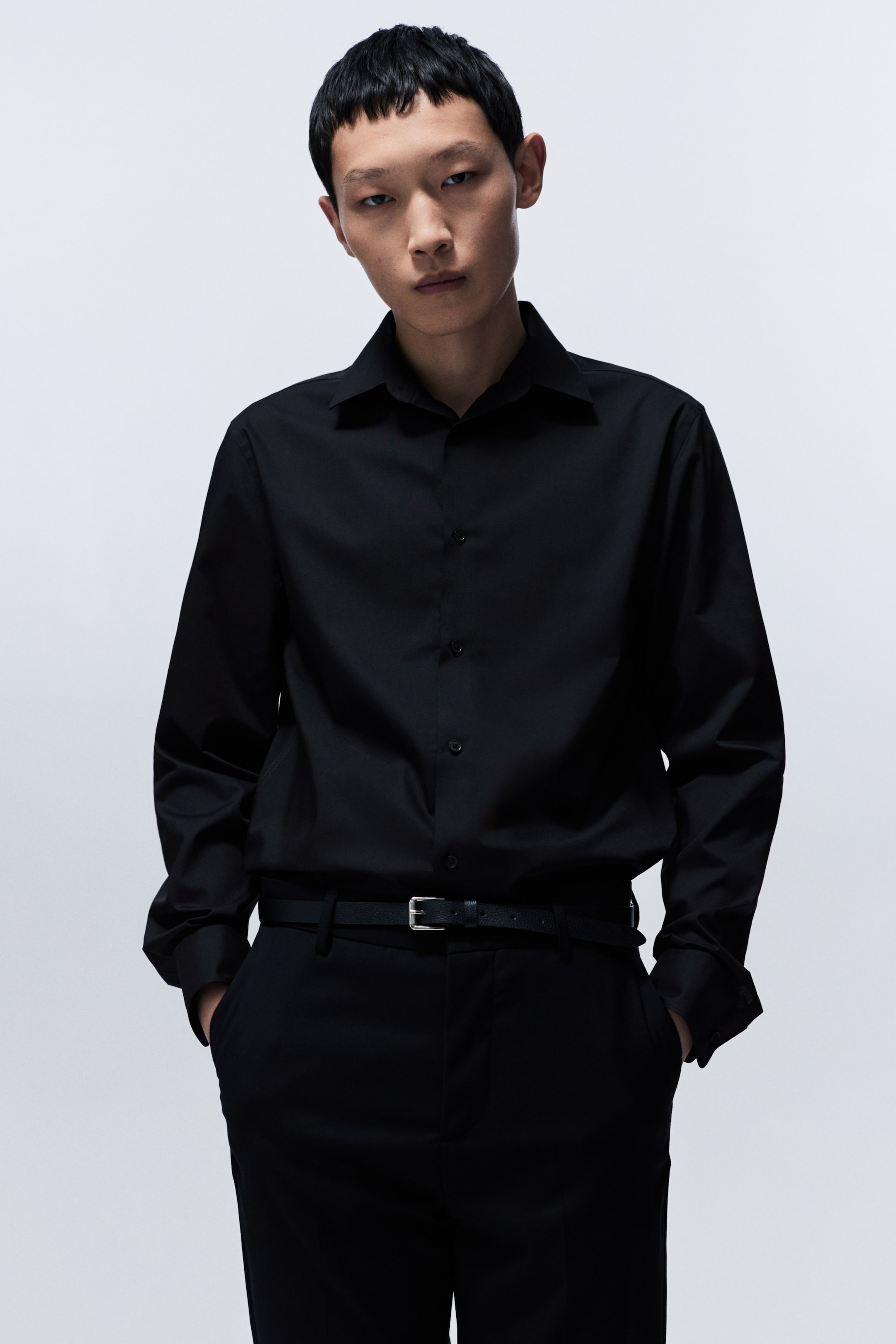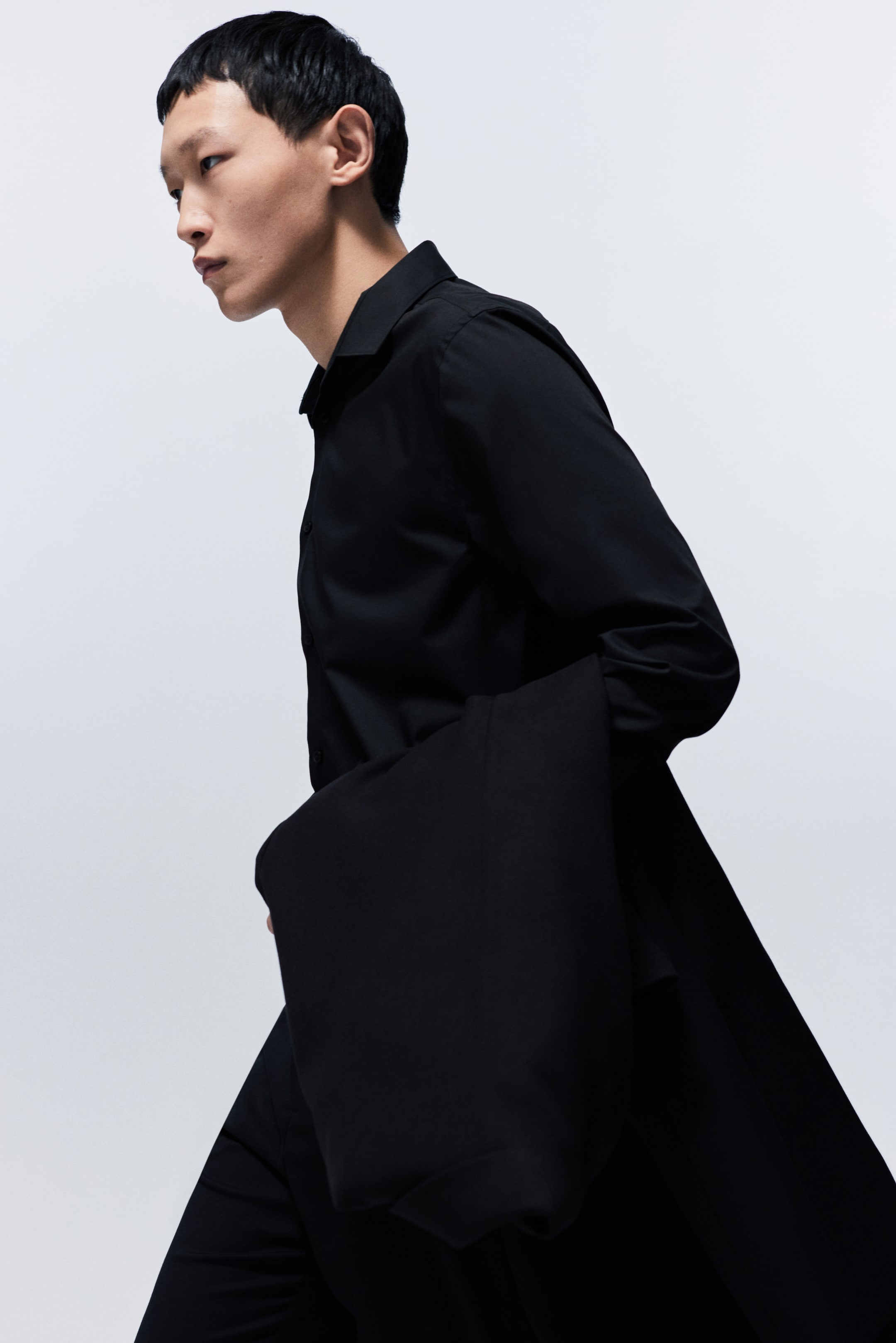 Бренд - H&M; Длина - Стандарт; Длина рукава - Длинный рукав; Материал (состав) - Полиэстер, Хлопок; Модель - Стандарт; Тип воротника - Воротник рубашки; Узор - Однотонный; Цвет - Черный