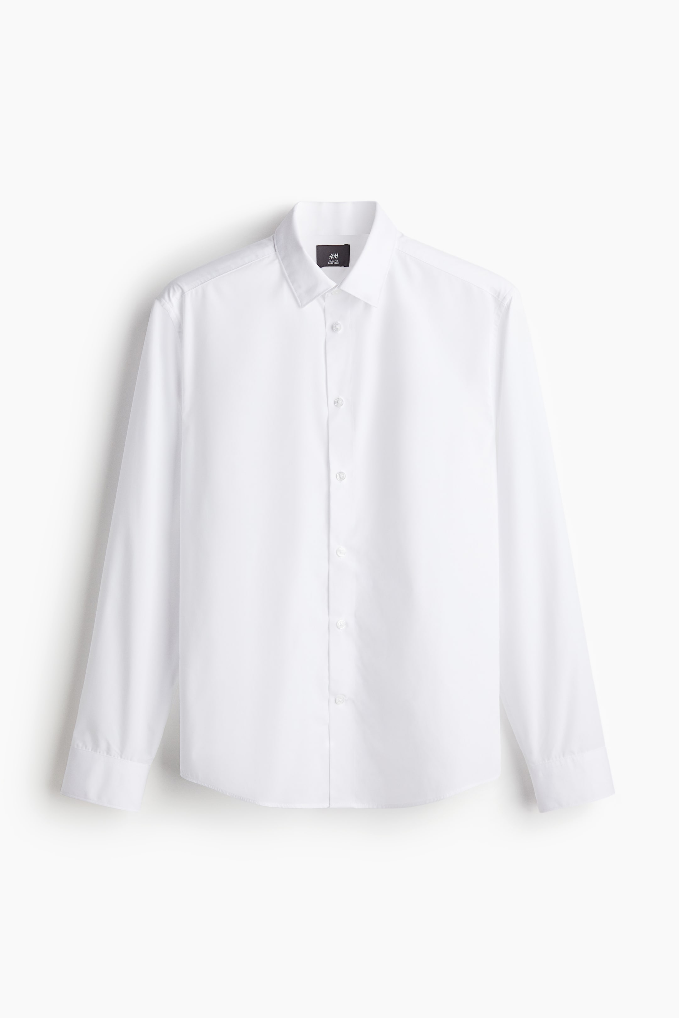 Бренд - H&M; Длина - Стандарт; Длина рукава - Длинный рукав; Материал (состав) - Полиэстер, Хлопок; Модель - Узкий; Тип воротника - Воротник рубашки; Узор - Однотонный; Цвет - Белый