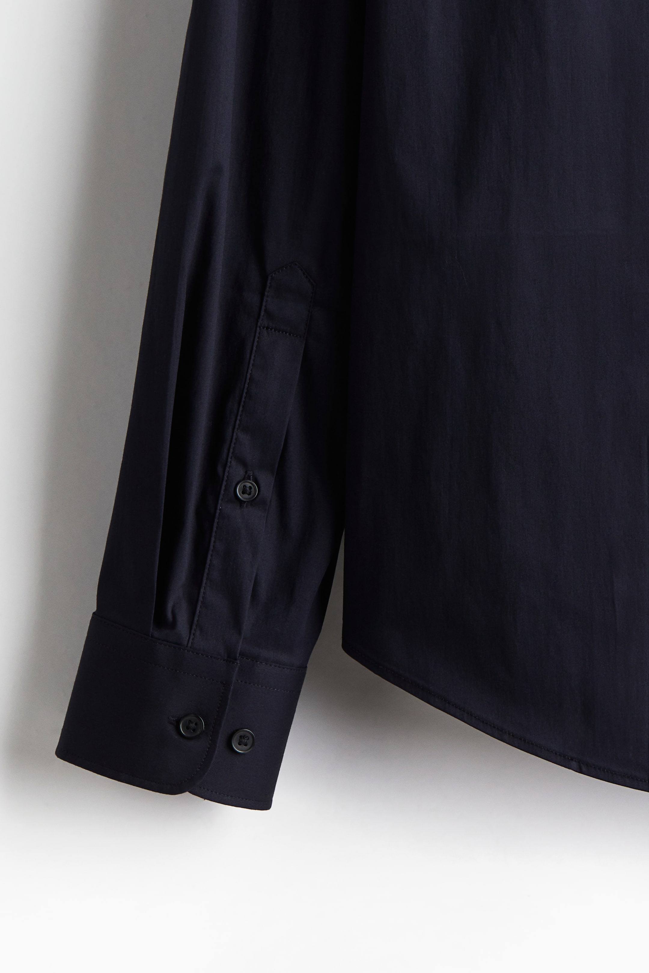 Бренд - H&M; Длина - Стандарт; Длина рукава - Длинный рукав; Модель - Узкий; Тип воротника - Воротник рубашки; Узор - Однотонный; Цвет - Черный