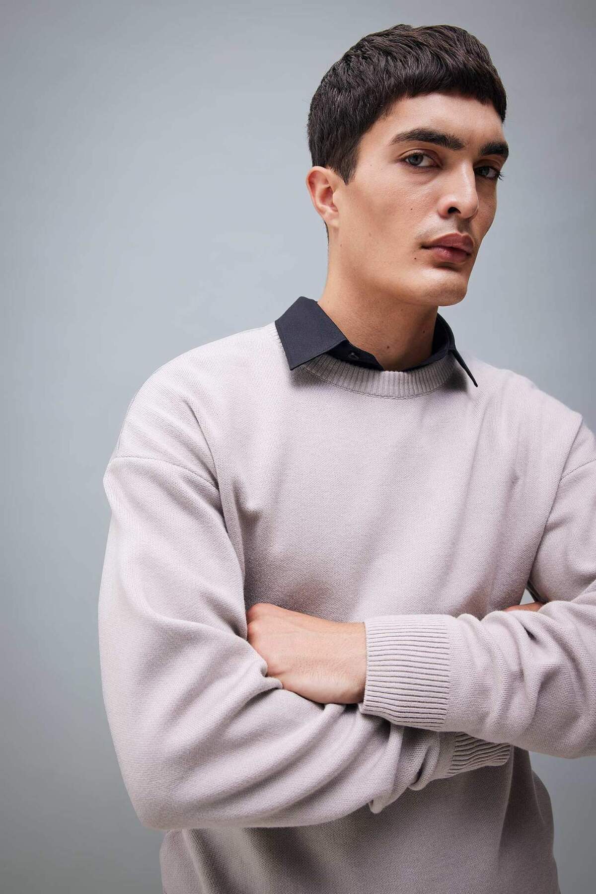 Базовый свитер прямого кроя с круглым воротником и длинными рукавами. Выполнен из трикотажного полотна, подходит для повседневной носки.