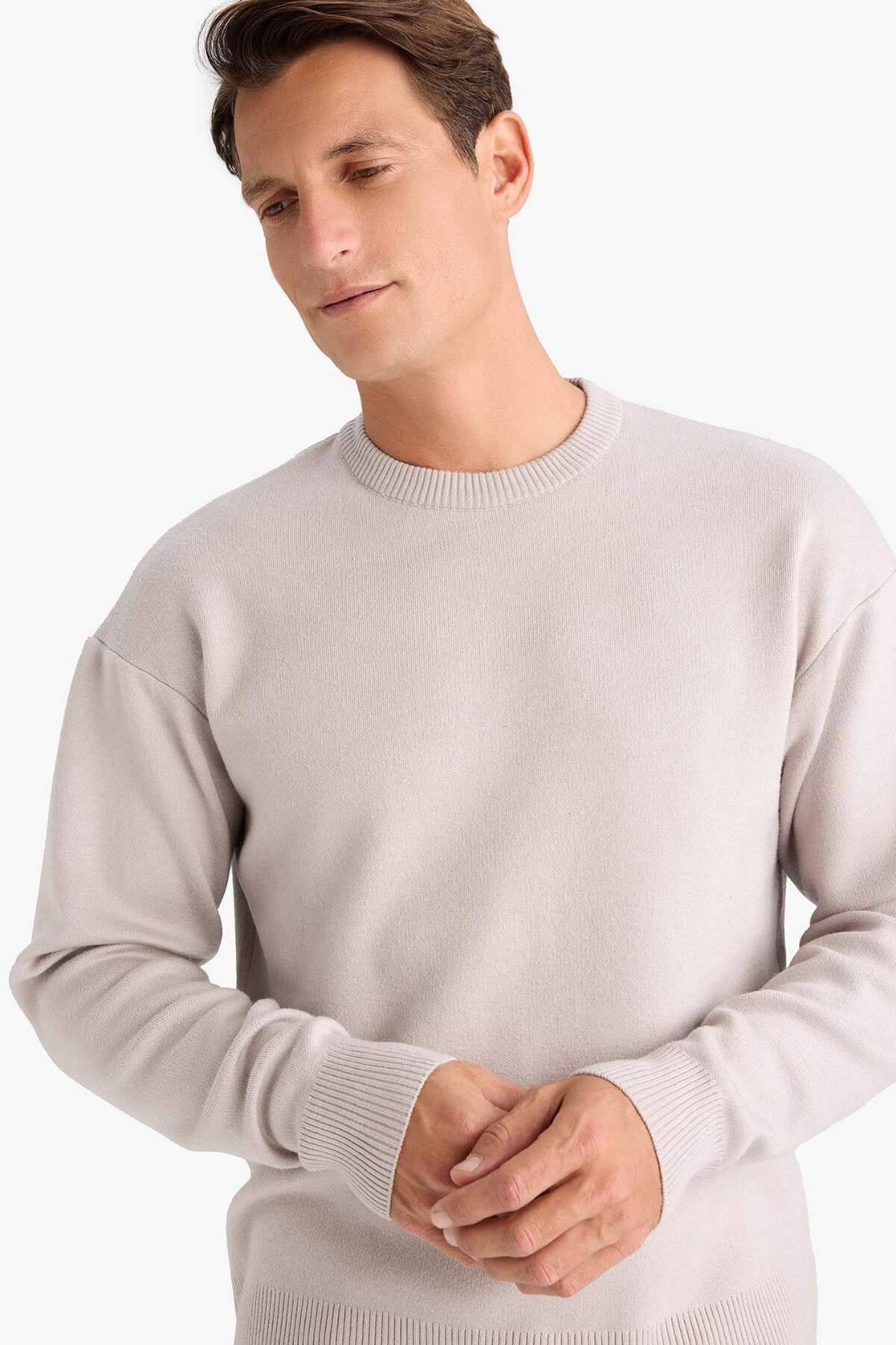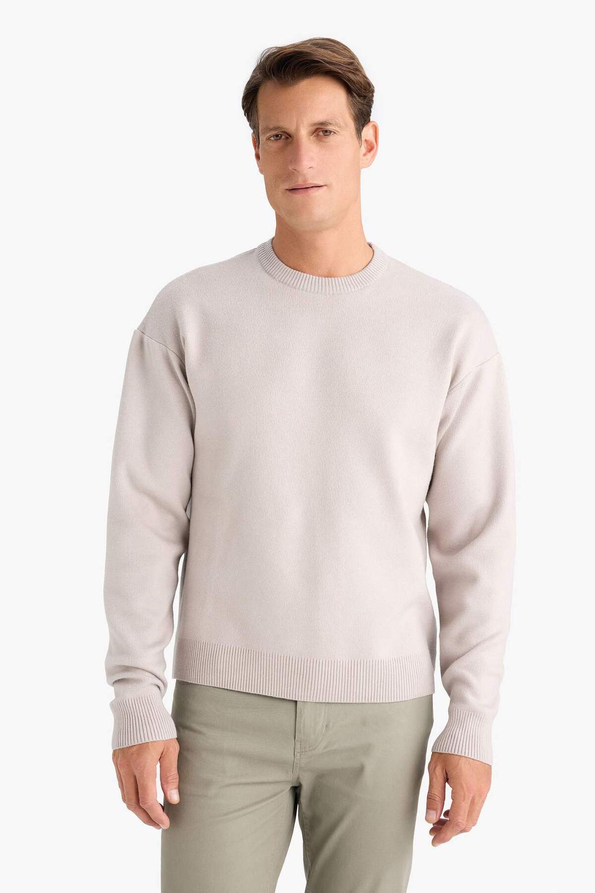 Свитер базовый с круглым воротником DeFacto, Цвет: Бежевый, Размер: M