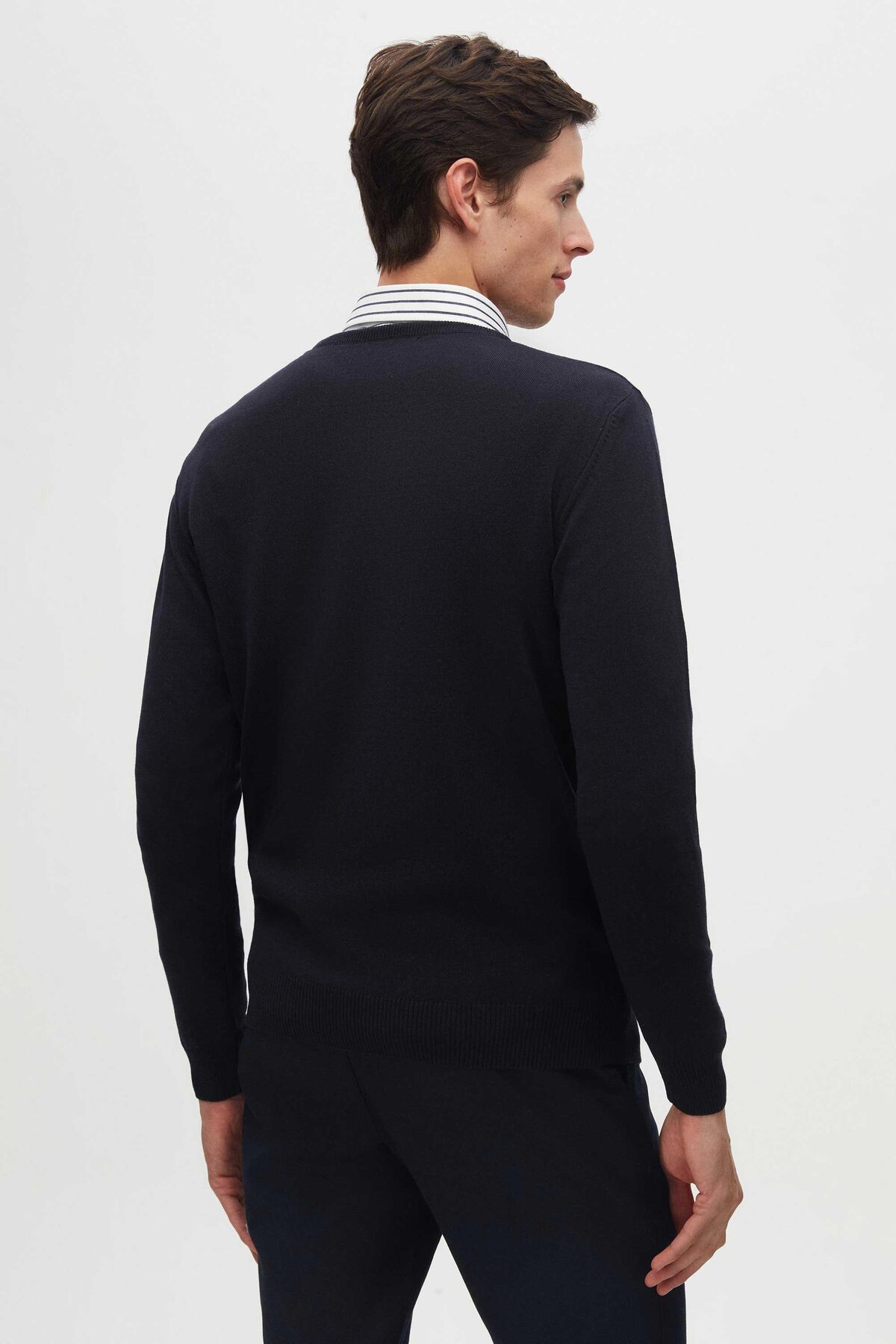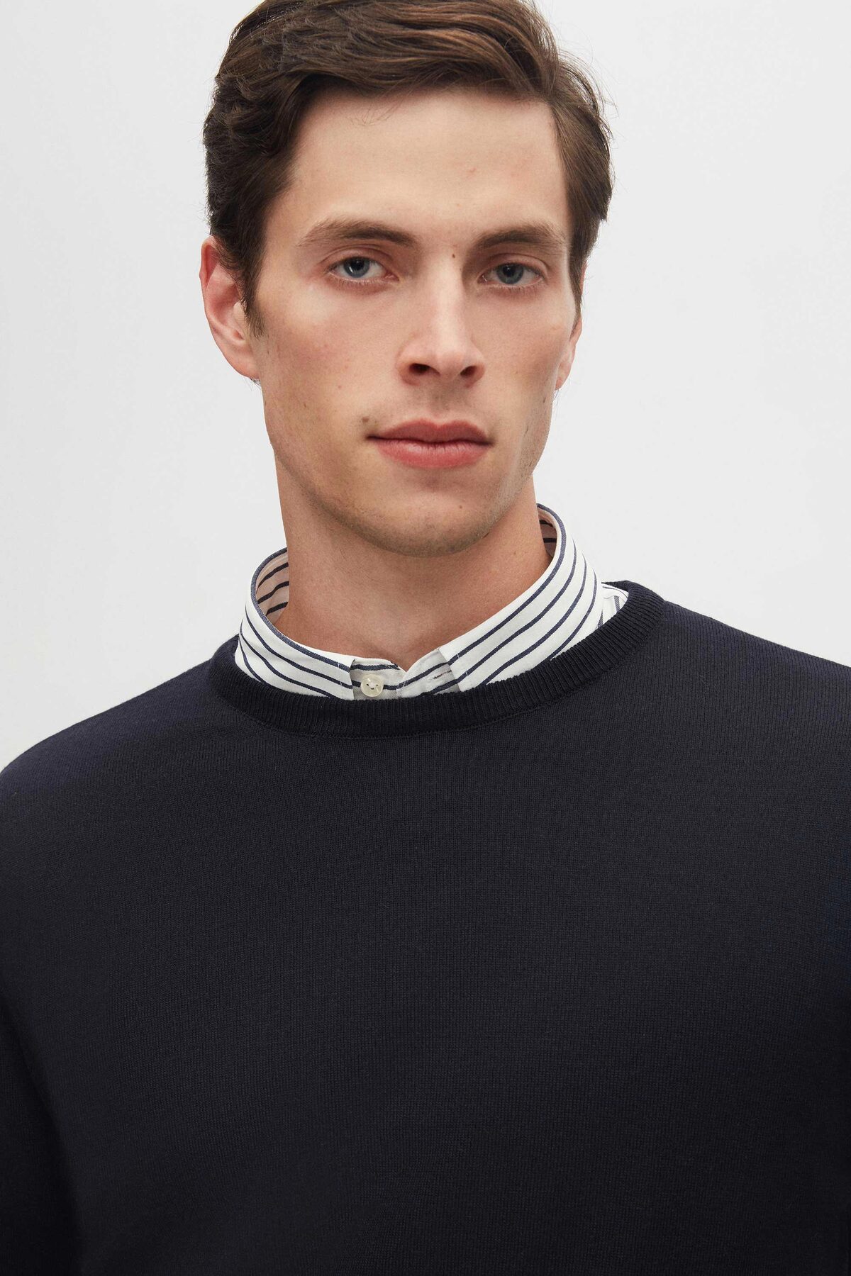 Свитер D'S Groom классического кроя, темно-синий, с круглым вырезом, не образующий катышков