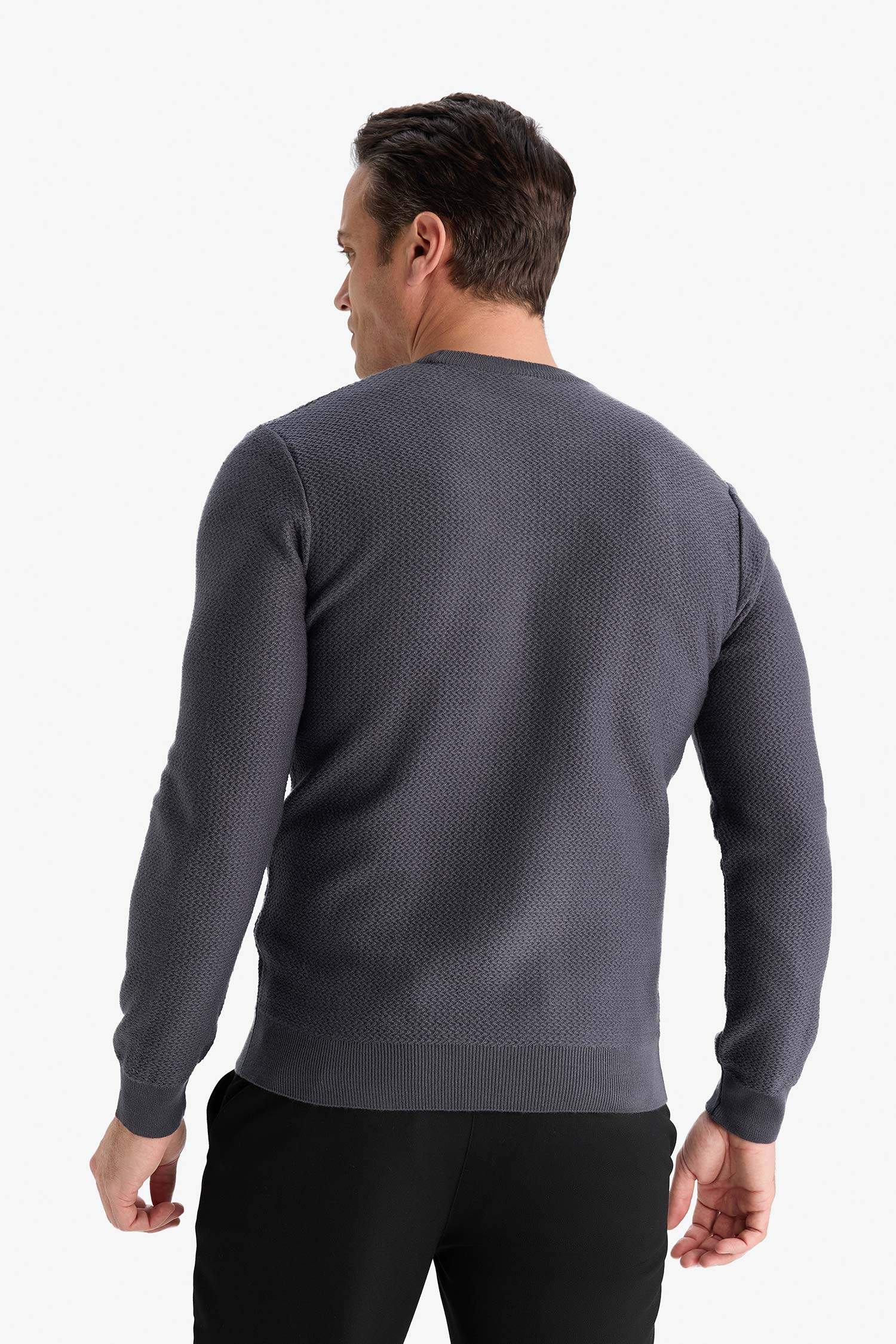 Свитер мужской стандартной посадки с круглым воротником DeFacto, Цвет: Антрацит, Размер: L