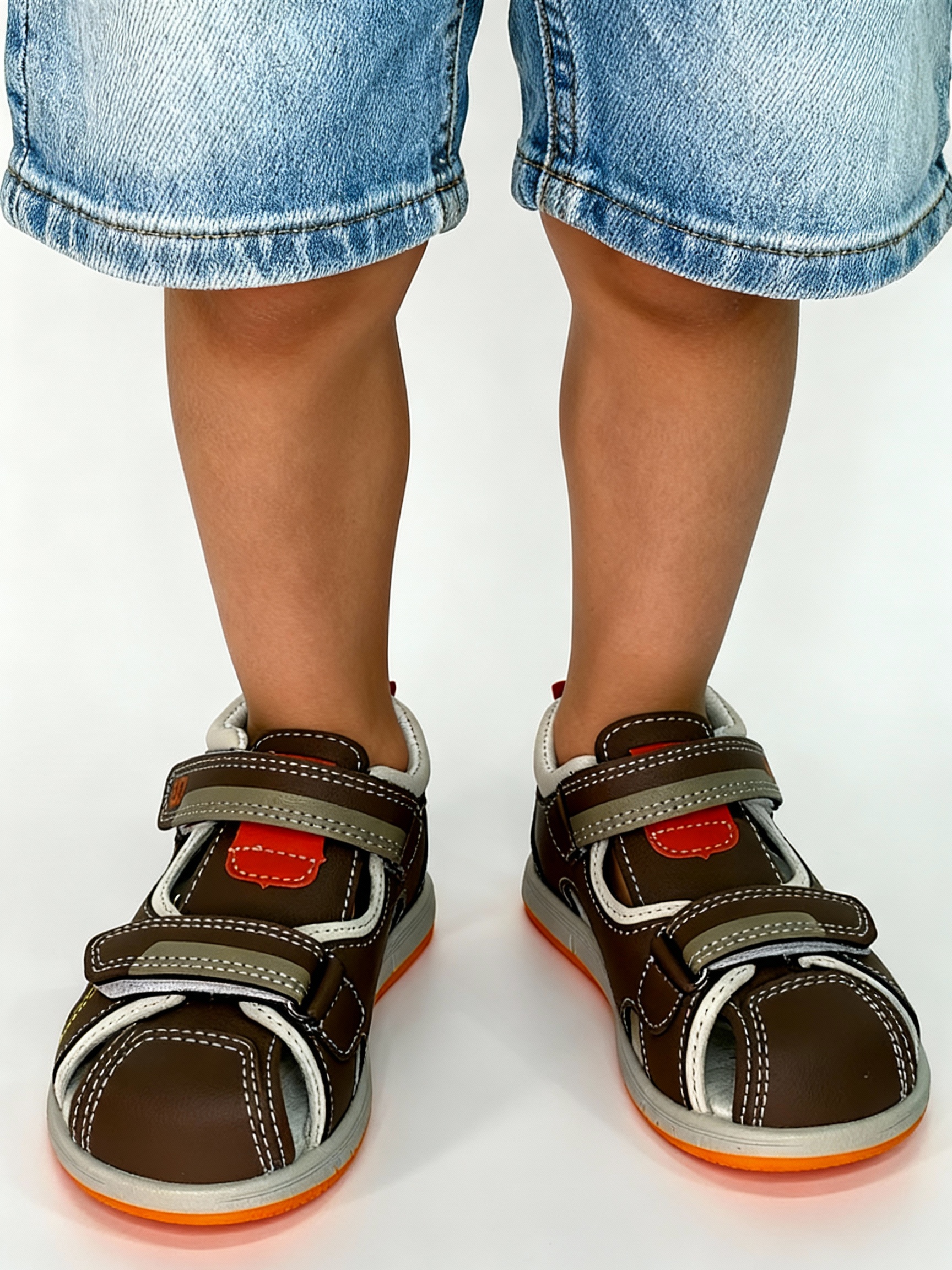 Детские босоножки шаг вперёд с оранжевыми вставками для мальчиков