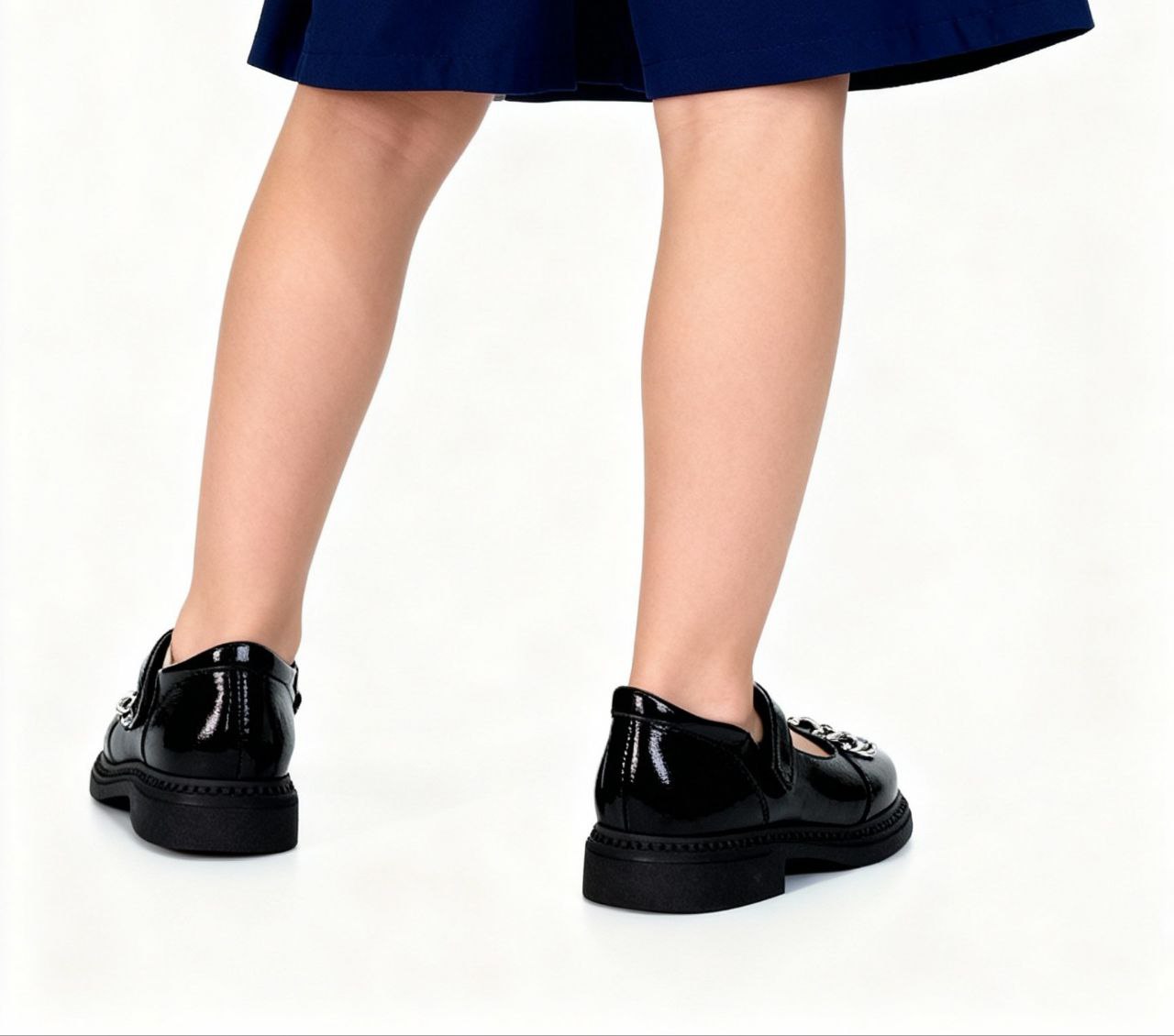 Детские чёрные лакированные кожанные туфли Polipeys для девочек