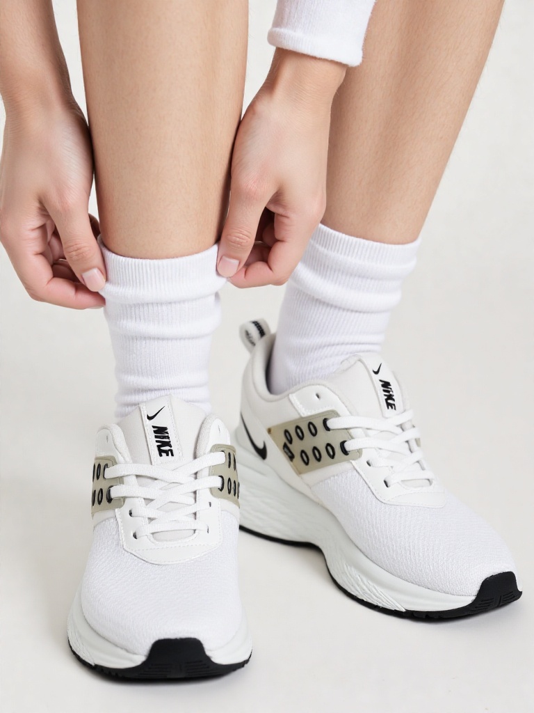 Белые кроссовки Nike, лёгкие, дышащие, спортивные, удобные.