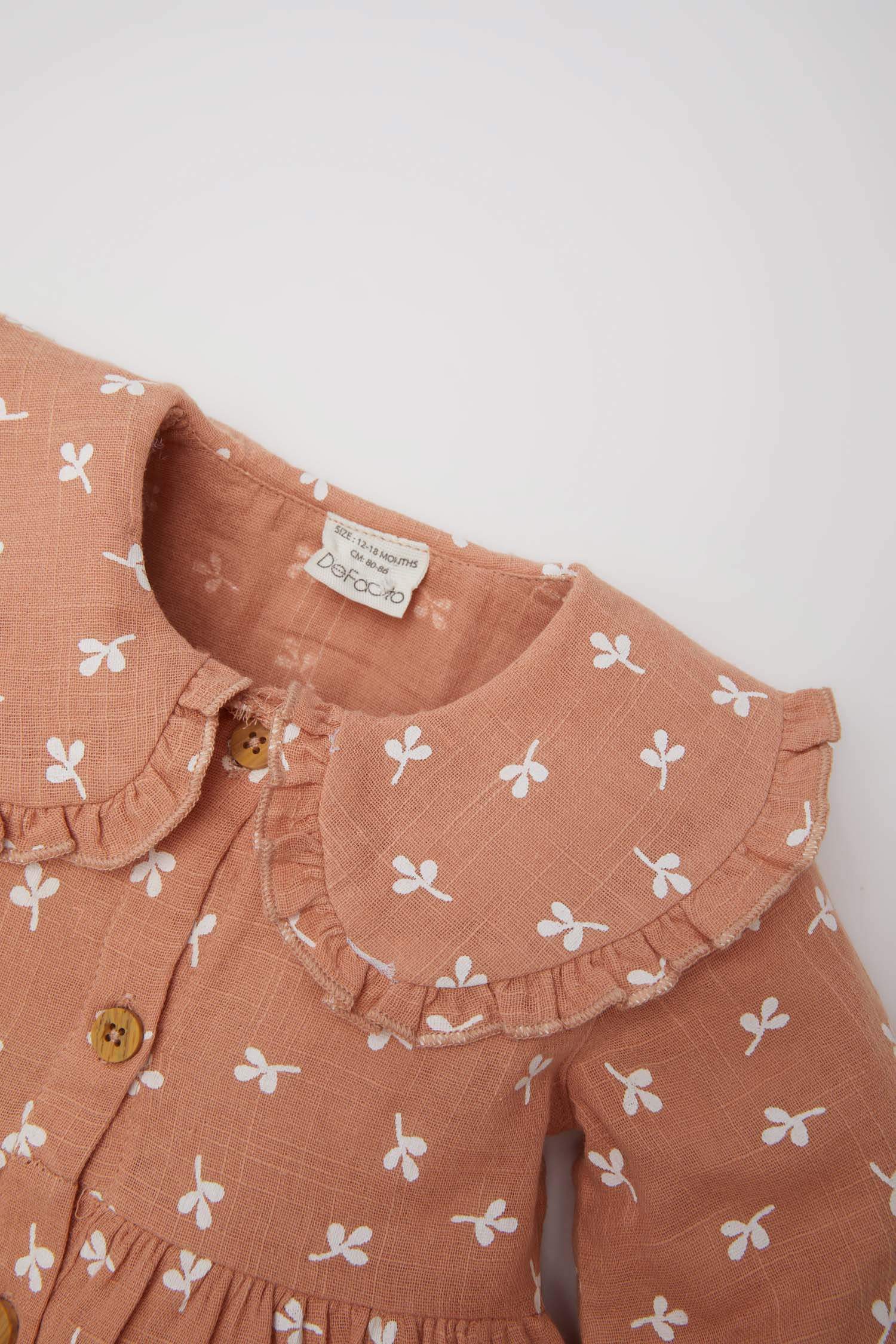 Платье для девочки цветочное с длинными рукавами из муслина DeFacto, Reňk: Goňur, Ölçeg: 5-6 ýaş