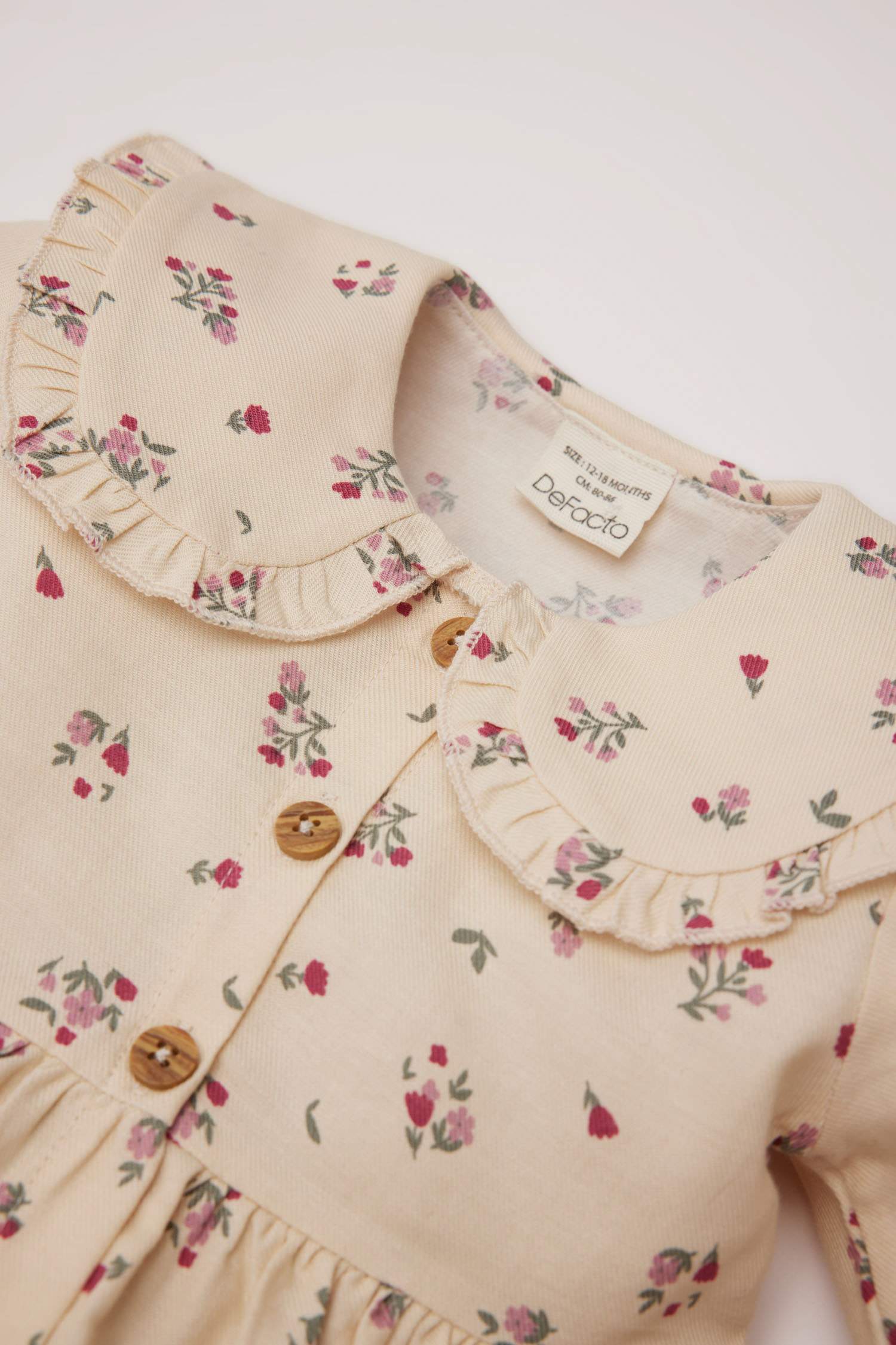 Платье для девочки цветочное с длинными рукавами твил DeFacto, Reňk: Bež, Ölçeg: 18-24 aý