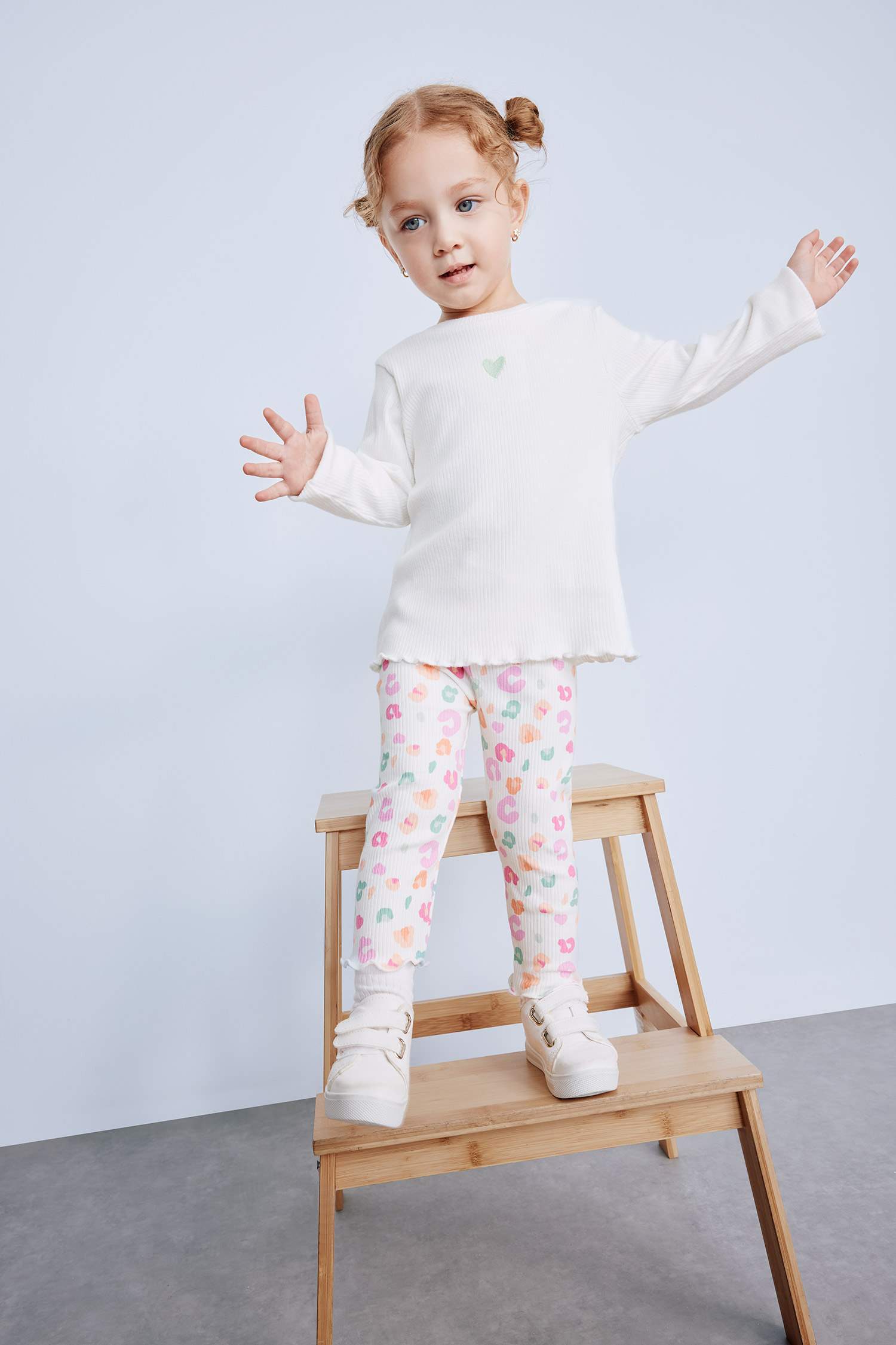 Футболка детская для девочки с велосипедным воротником и принтом, длинный рукав, кашкорсе DeFacto, Reňk: Экрю, Ölçeg: 4-5 ýaş