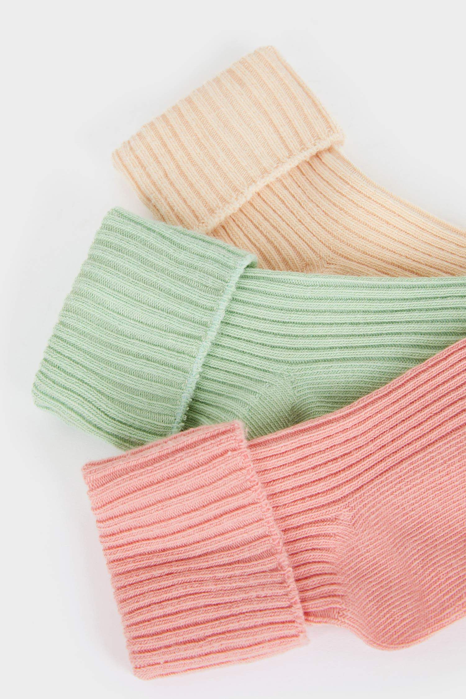 Носки детские противоскользящие хлопковые длинные 3 шт. розовые DeFacto, Reňk: Gülgüne, Ölçeg: 6-12 мес.