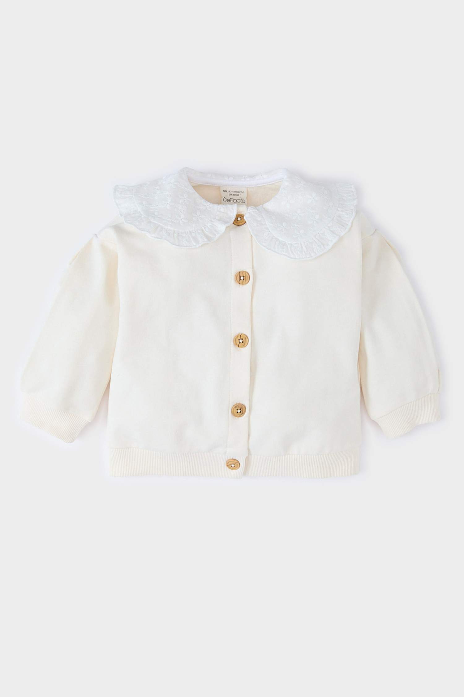Кофта детская для девочки с кружевным воротником и пуговицами DeFacto, Reňk: Экрю, Ölçeg: 3-4 ýaş