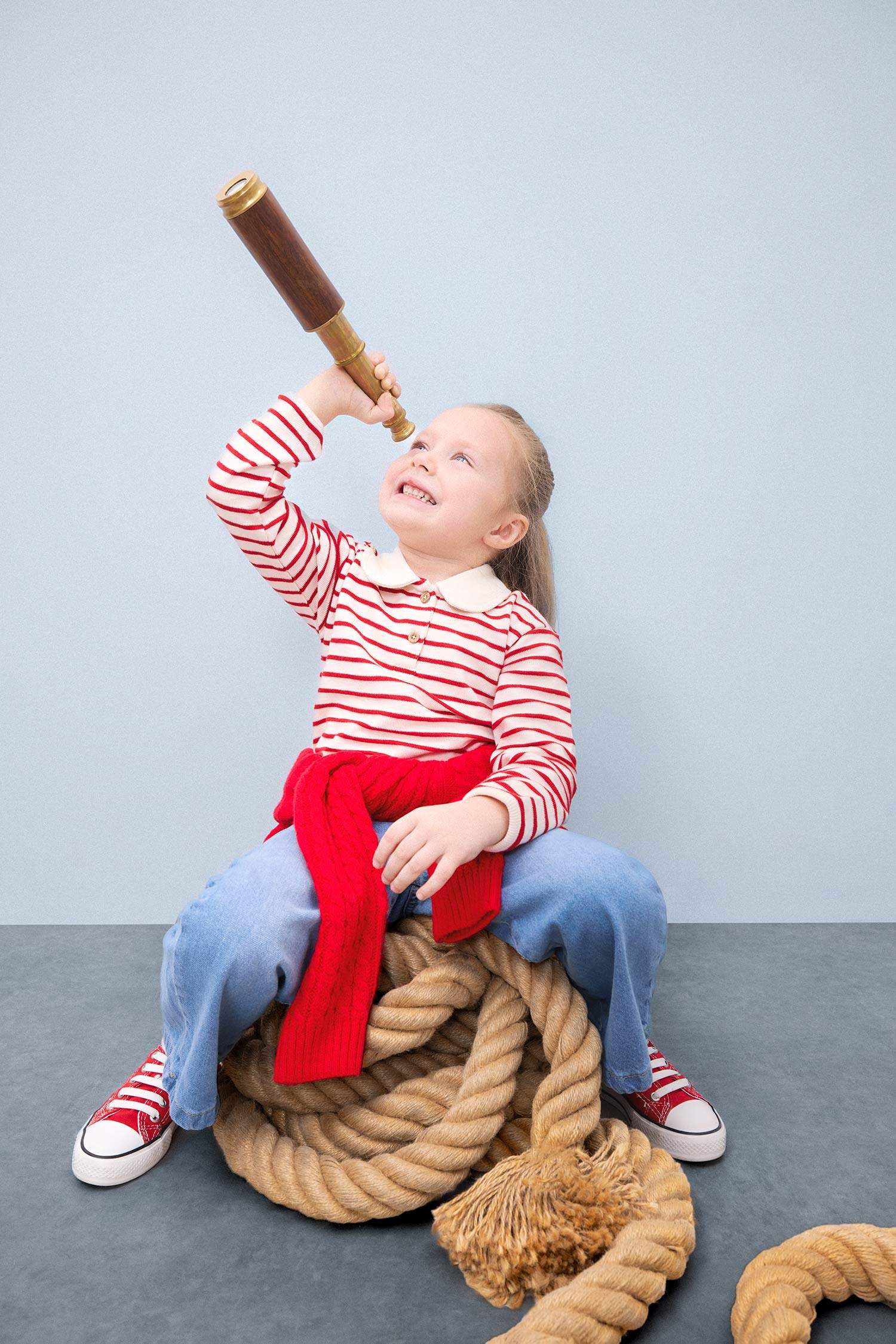 Детский свитшот для девочек с круглым вырезом и полосатым узором, выполненный из мягкого материала для комфортной носки