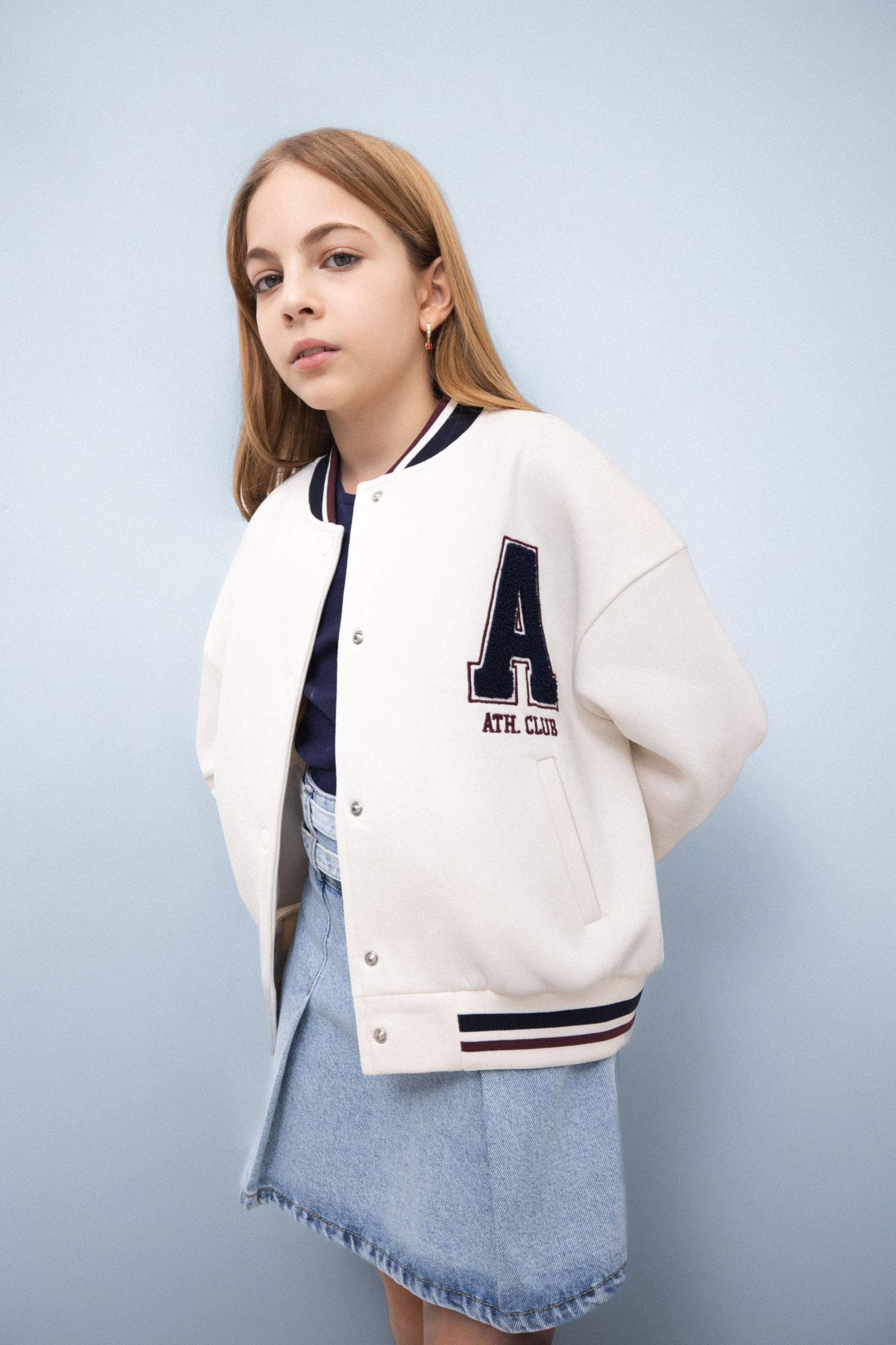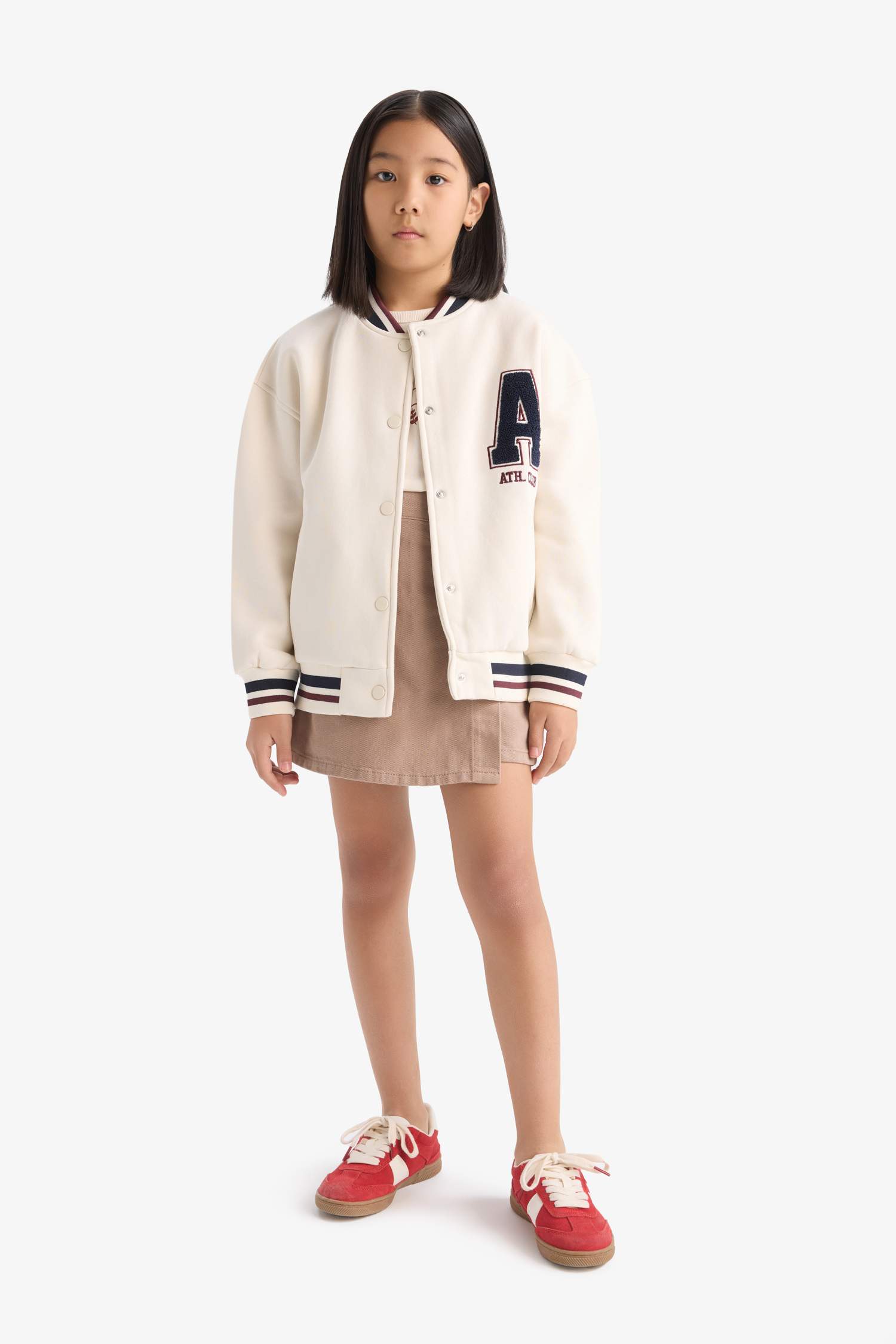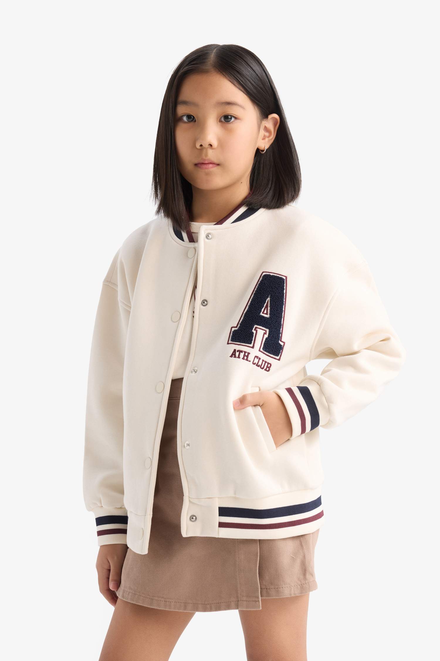 Куртка бомбер детская с воротником колледж и застежкой на кнопки DeFacto