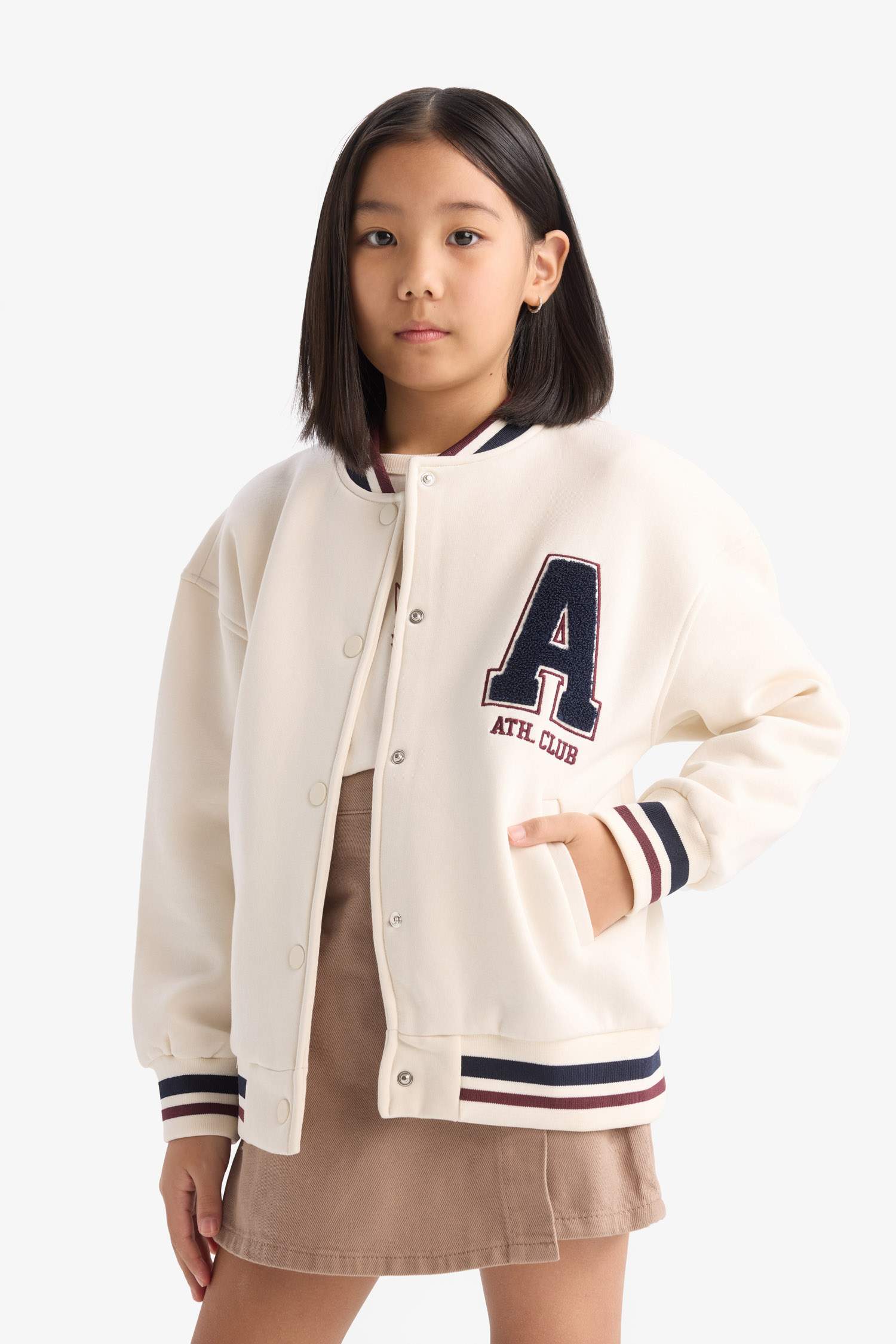 Куртка бомбер детская с воротником колледж и застежкой на кнопки DeFacto