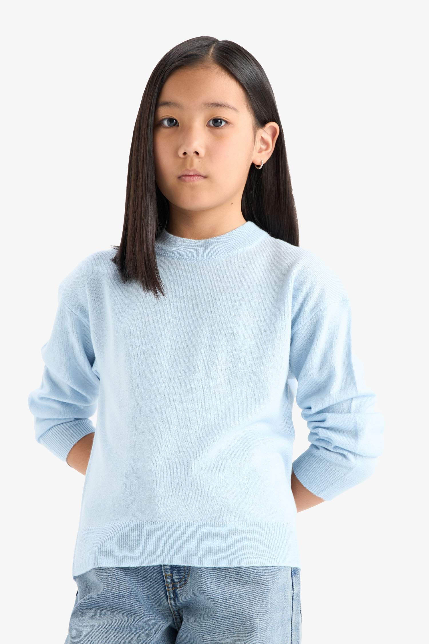 Свитер детский для девочек стандартного кроя с круглым воротником DeFacto