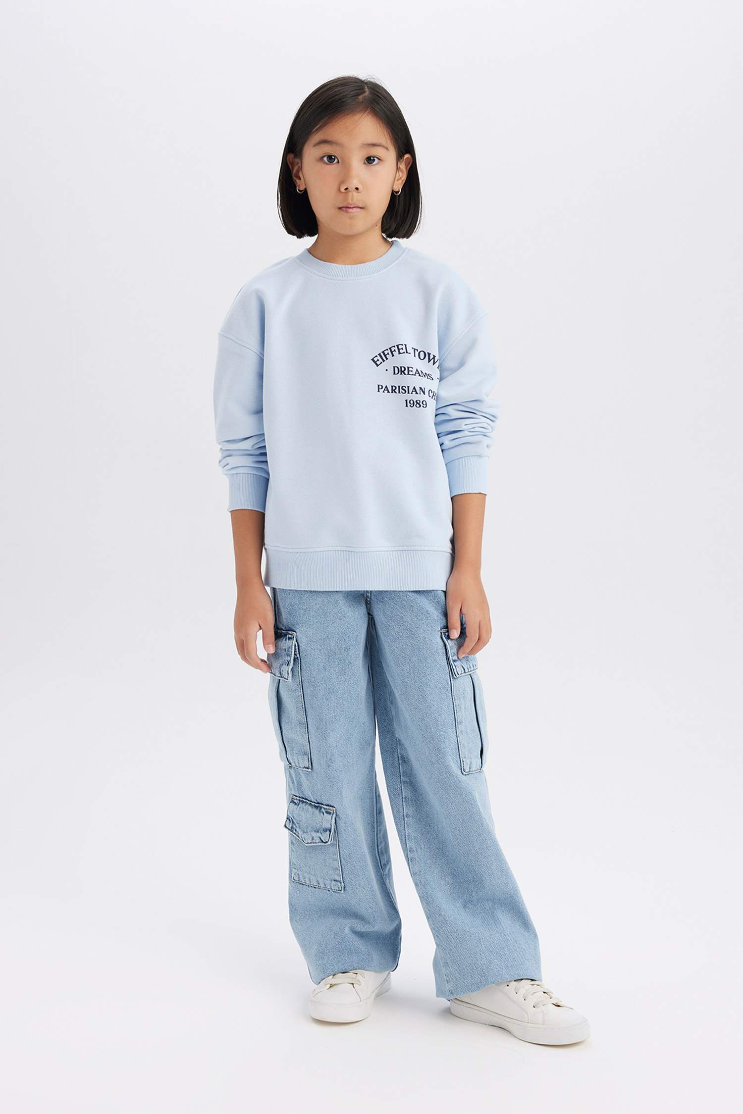 Свитшот детский Relax Fit с велосипедным воротником и принтом DeFacto