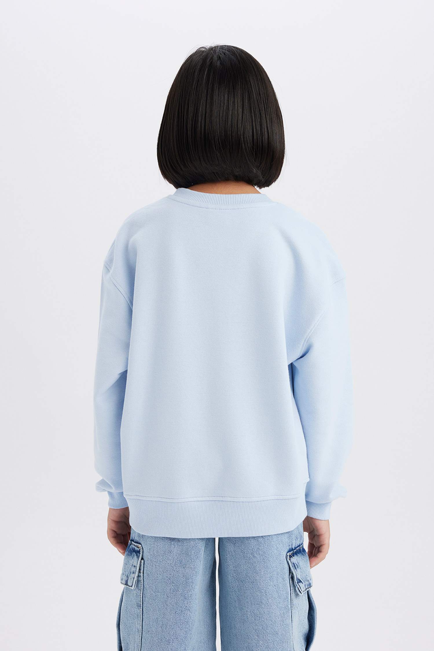 Детский свитшот свободного кроя Relax Fit с велосипедным воротником и декоративным принтом для девочек