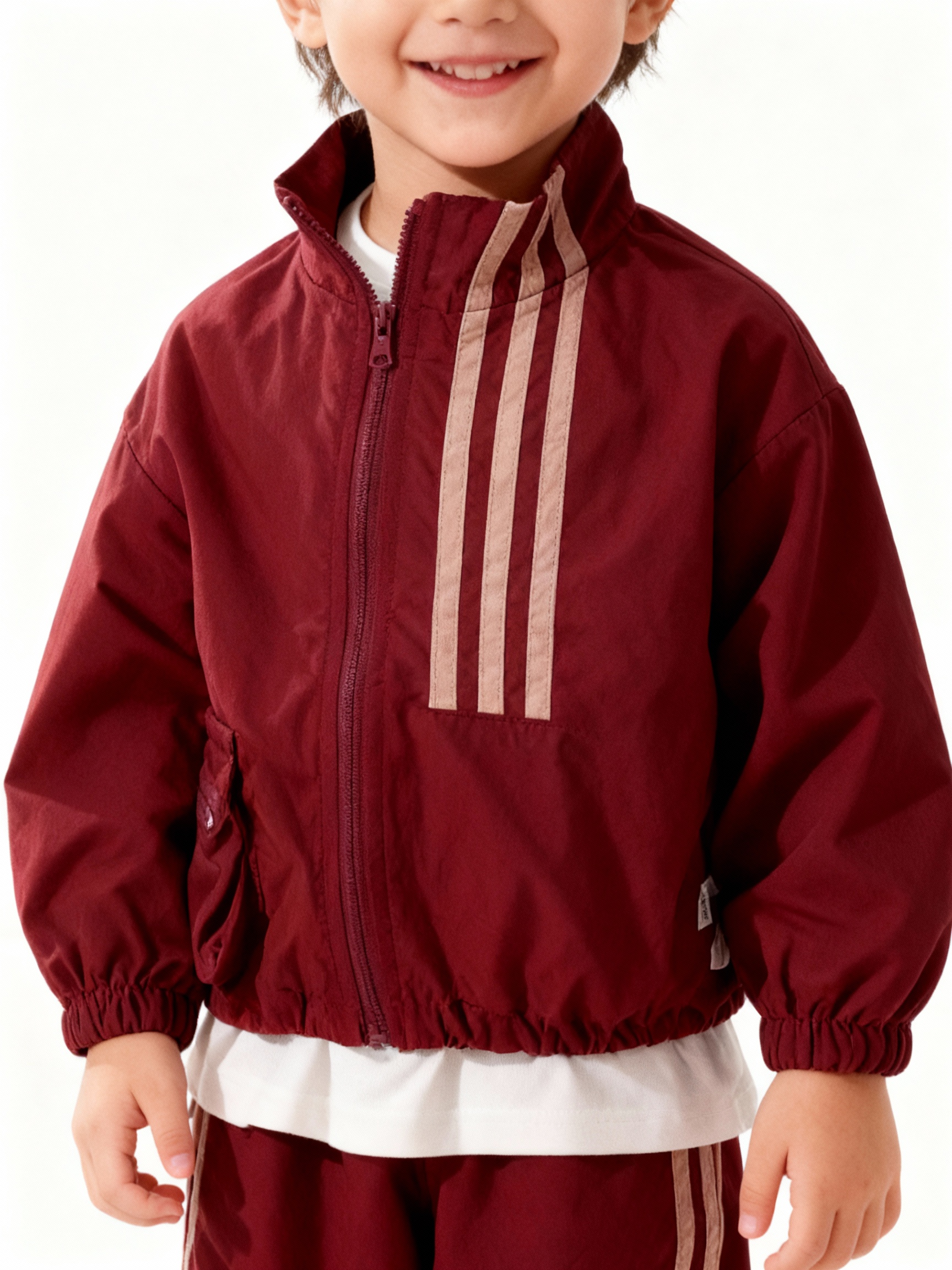 Стильный бордовый костюм из лёгкого материала с контрастными полосками, удобный для активных прогулок.