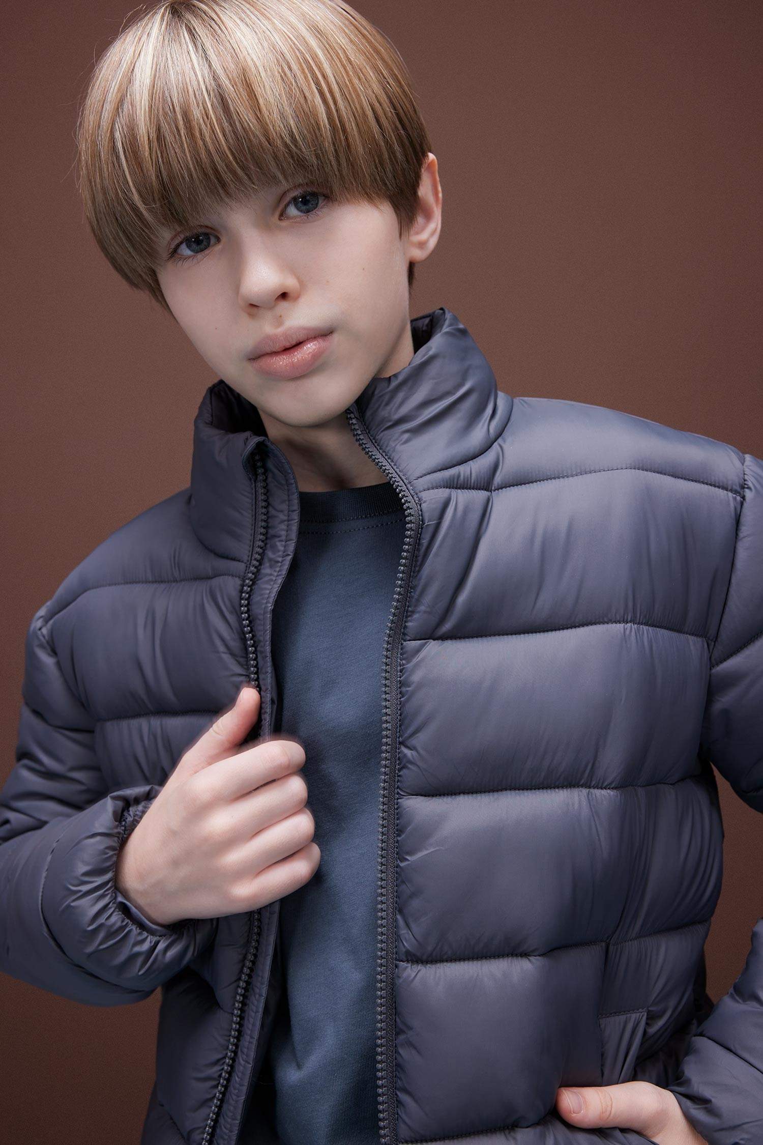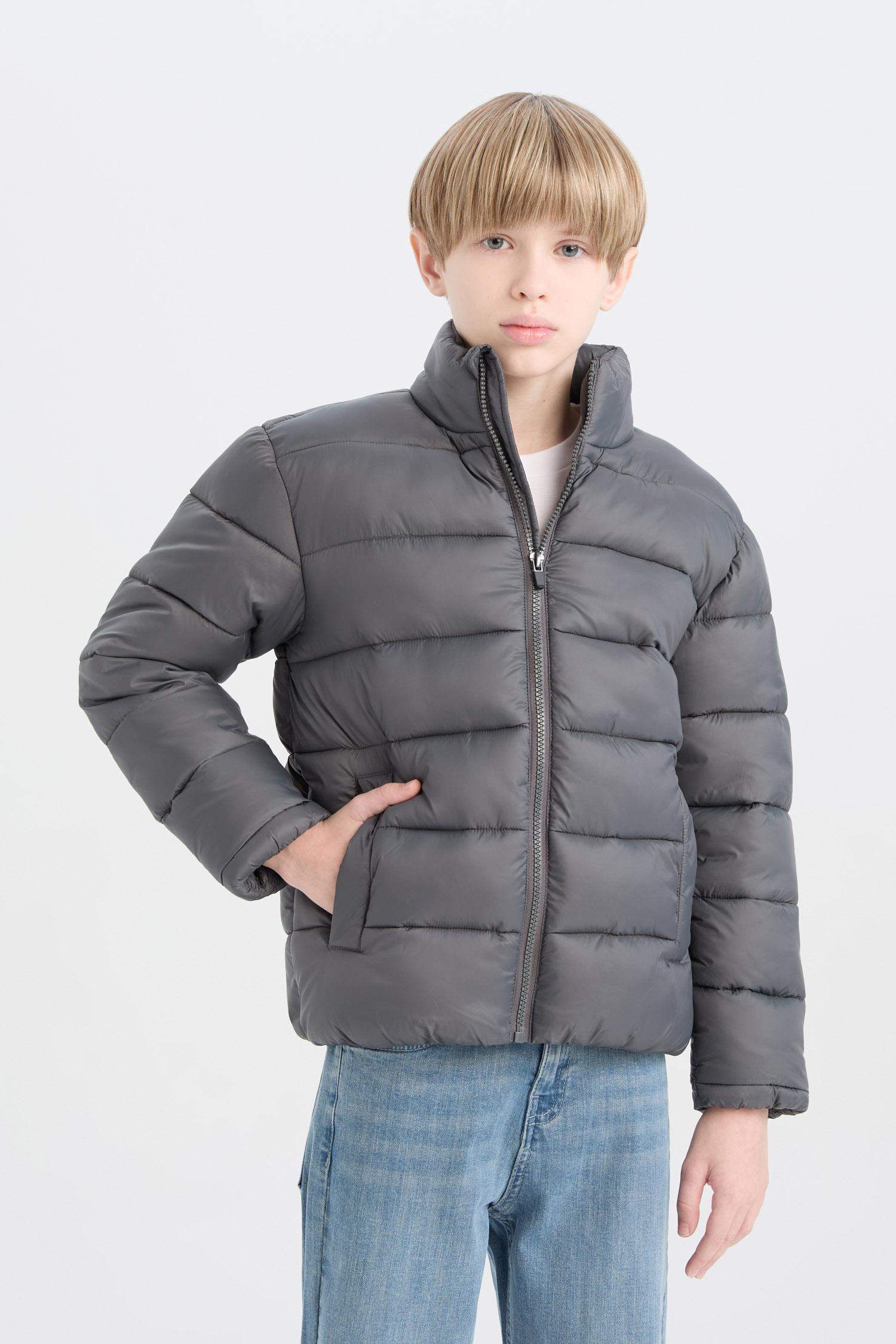 Куртка мальчиковая утепленная водоотталкивающая с карманами на молнии DeFacto, Reňk: Antrasit, Ölçeg: 7-8 ýaş