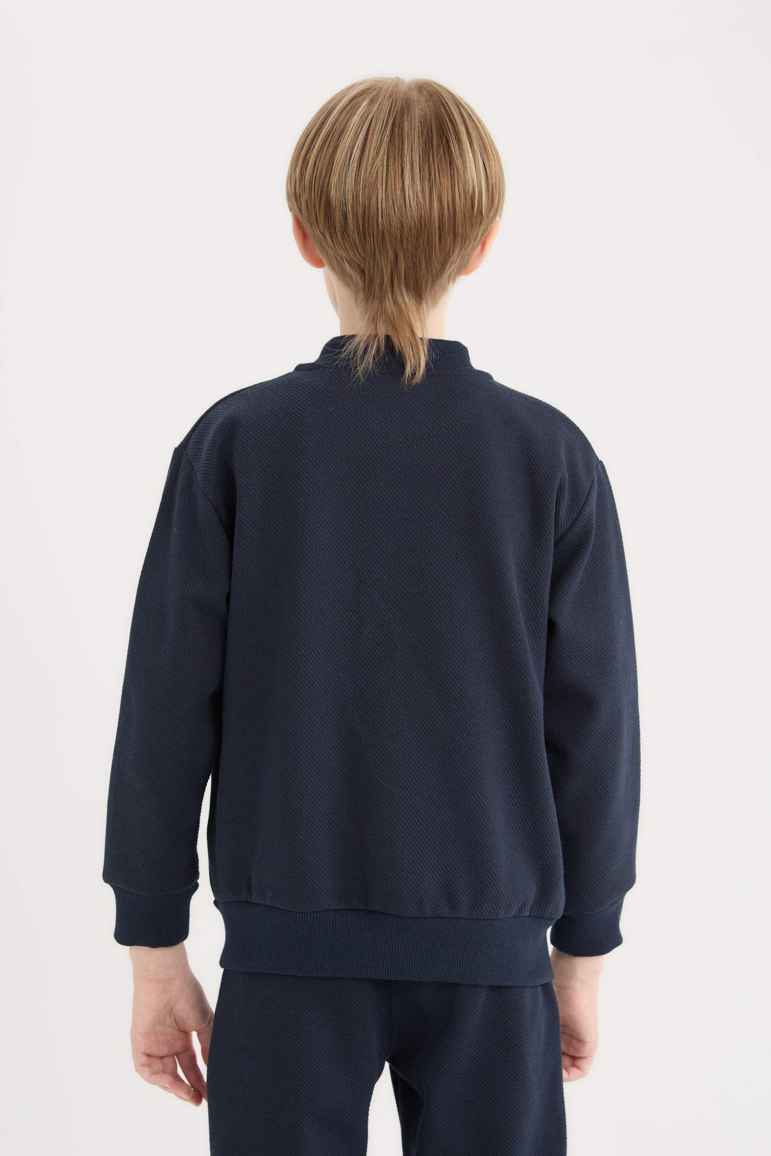 Куртка бомбер с воротником колледж на молнии для мальчиков подростков DeFacto, Reňk: Goýy gök, Ölçeg: 8-9 ýaş