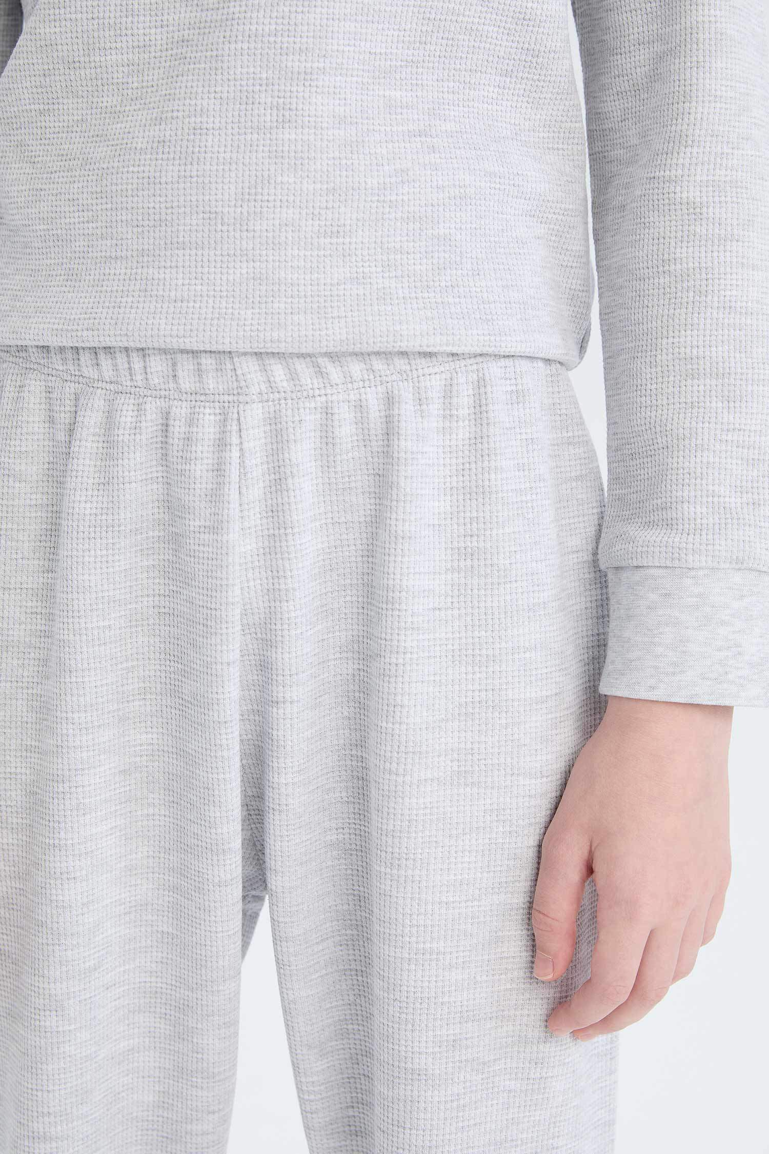 Пижама детская мальчиковая вафельная с длинными рукавами и брюками на резинке DeFacto, Reňk: Çal, Ölçeg: 9-10 ýaş