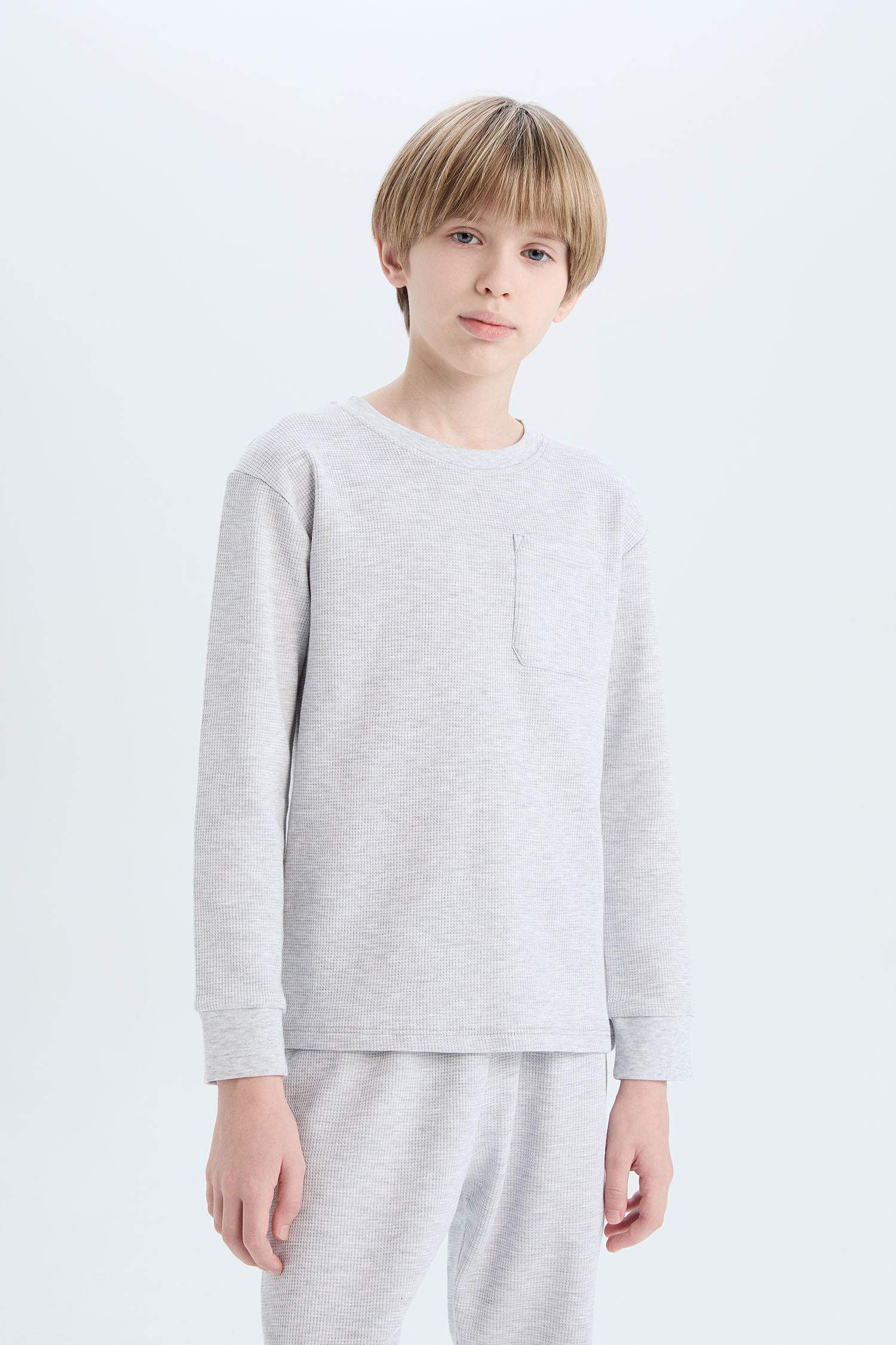 Пижама детская мальчиковая вафельная с длинными рукавами и брюками на резинке DeFacto